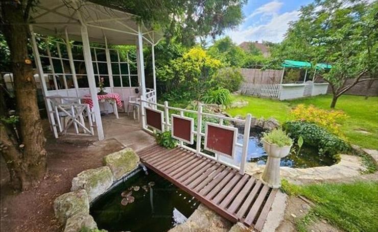 Az udvar gondosan parkosított, ahol egy kerti tó és egy üvegház is található, így tökéletes helyszín a pihenésre és a kertészkedésre egyaránt. a telek teljes mérete 1147 négyzetméter, amely ideális mindenki számára, aki tágas, zöld környezetben szeretne élni.