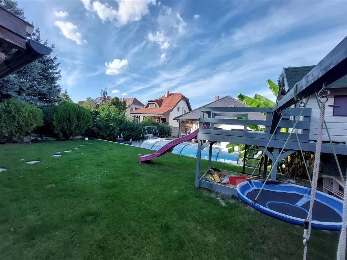 A forró nyári napokon a két klíma és a kertben lévő 3, 5 x 7 méteres medence nyújt felfrissülést.