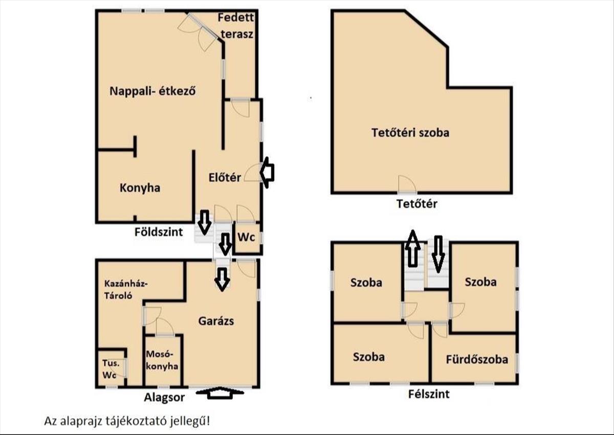 A ház elrendezése jól átgondolt, a szinteltolásos kialakításnak köszönhetően minden négyzetméter optimálisan kihasználható.