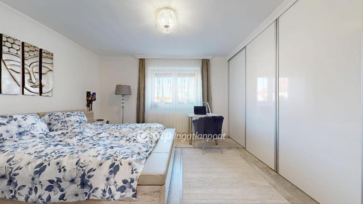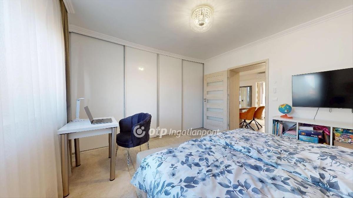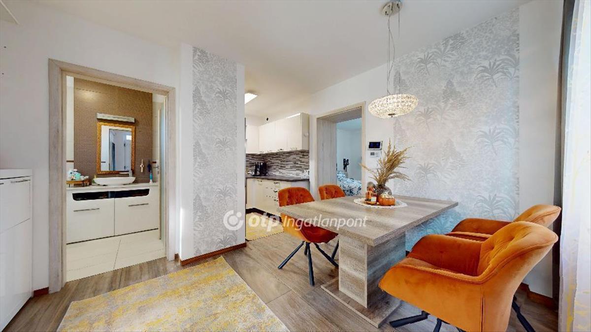 A ház elosztása praktikus és otthonos: 2 külön nyíló szoba, konyha, étkező, fürdőszoba, beépített gardrób. Ízléses, modern bútorzat, amely igény esetén maradhat