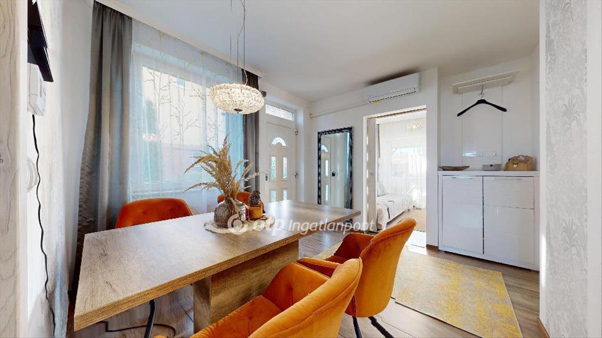 Eladásra kínálunk egy 51 nm -es, felújított kertes házat 21 nm -es fedett terasszal, mindössze 800 méterre a centrumtól. Az ingatlan minden részletében átgondolt, korszerű otthon: 8 éve teljes körű felújítást kapott, megújult a villamos- és vízhálózat, a fűtésrendszer, valamint új cseréptető került rá.