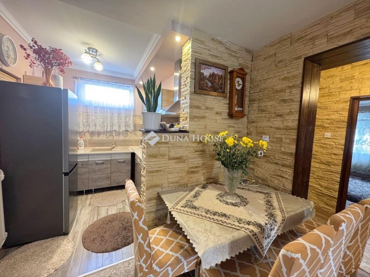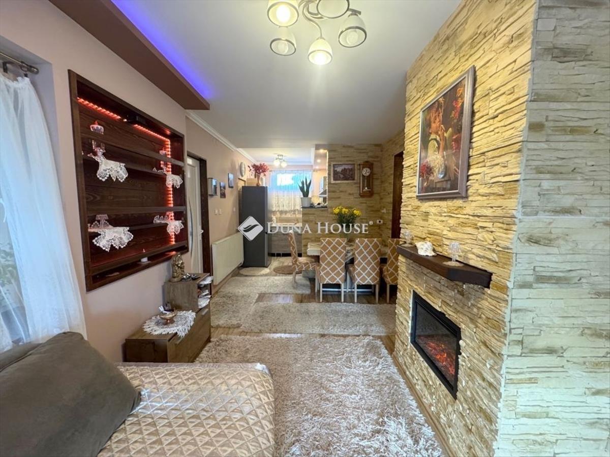 Nyírbogdány Fő utcából nyíló utcájában, teljeskörűen felújított, Nappali + amerikai konyhás, + 2 szobás családi ház, 1055 nm-es, rendezett telken eladó! Jellemzők:- 1985 ben épült téglaépítésű lakóház- Cseréptetős, új csatorna- Kívül-belül, alul-felül szigetelt- Új homlokzati festés- Műanyag nyílászárók, redőnyökkel szerelve- Klíma- Elrendezése: Nappal + étkező + konyha, 2 külön bejáratú szoba, Fürdőszoba Wc-vel együtt, kamra, közlekedő- Épülethez hozzáépített kazánház, garázs- Fürdőszoba járólappal, többi helyiség új laminált parkettával burkolt- Kő díszburkolatok a közlekedőben, nappaliban, étkezőben- led világítás, nappaliban, szobákban- Kedvező rezsiköltség, fűtés átalánydíja 12. 000, - Ft/hó- Fűtése gázkazánról megoldott, radiátoros hőleadókkal- Nappaliban látványkandalló- Gépesített, modern konyhabútor- Igényes burkolatok, beltéri ajtók- Új, műanyag bejárati ajtó- Fedett terasz- Dél-Keleti fekvés- Rendezett udbóvarTovábbi kérdé esetén keressen elérhetőségeimen! Vevőink részére minden szolgáltatásunk díjmentes! Irodánkban szintén díjmentes hitel-, CSOK plusz, Falusi csok, Babaváró, Biztosítások ügyintézése! FIX 3% lakáshitelre megvehető