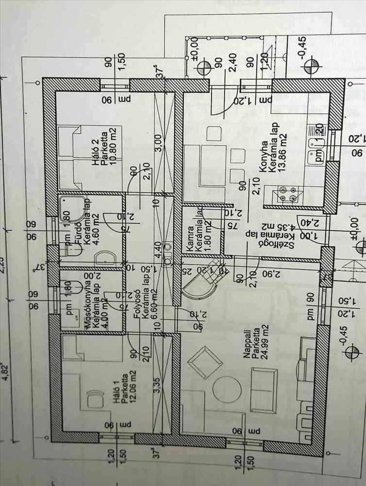 Nappali- konyha-étkező, 2 szoba, fürdőszoba, mosókonyha, kamra található benne, valamint 14 nm-es fedett terasz kapcsolódik hozzá, illetve 3 állásos garázs.