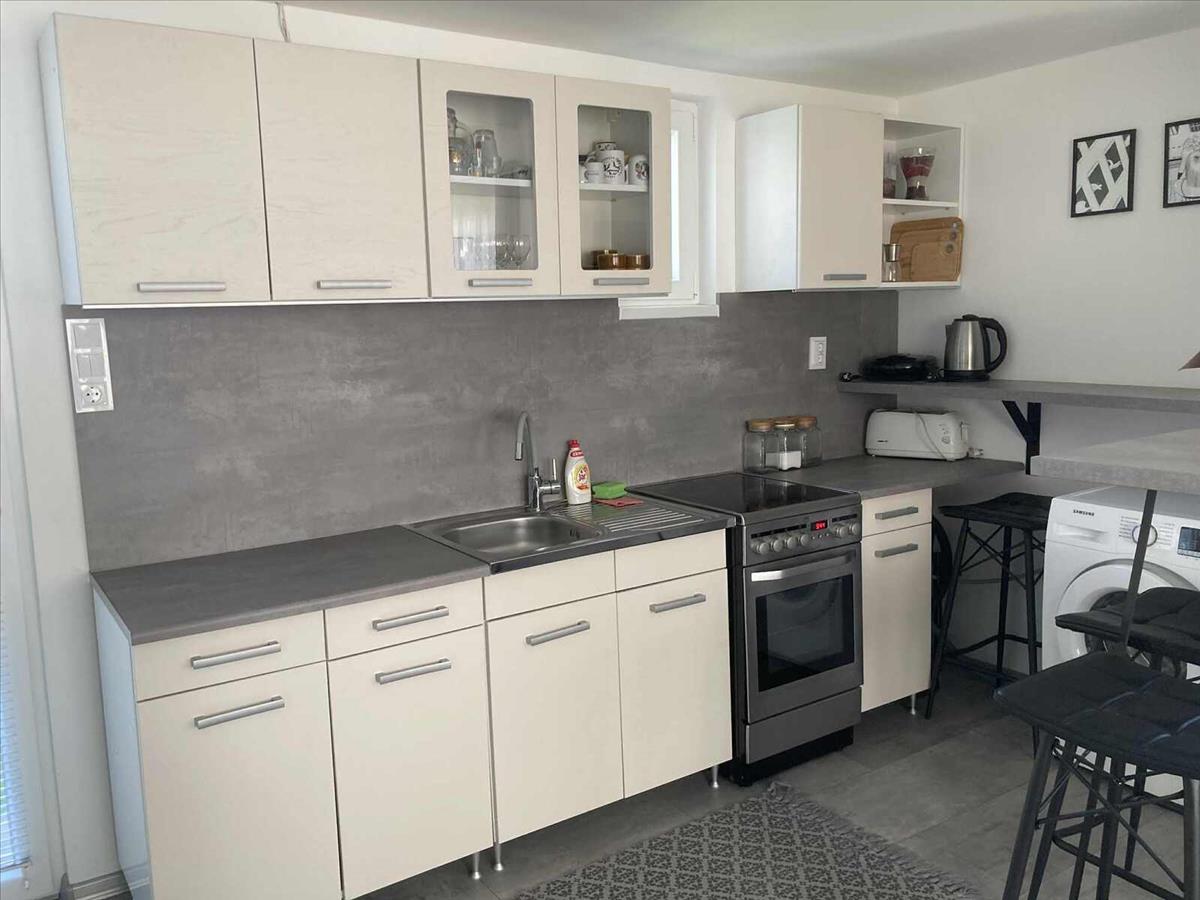 A kisebb ház amerikai konyhás nappalis, 2 szobás, kandallóval és klímával – ideális többgenerációs együttélésre vagy bérbeadásra.