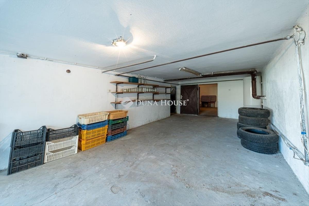 Az épület alatt egy tágas pince található, amelyhez kétállásos garázs kapcsolódik, így tárolásra és parkolásra is kiváló lehetőséget biztosít. a telek gondozott, számos kényelmi és kikapcsolódási lehetőséget kínál. Fedett terasz, filagória, szalonnasütő, valamint külön szerszámtároló is kialakításra került.