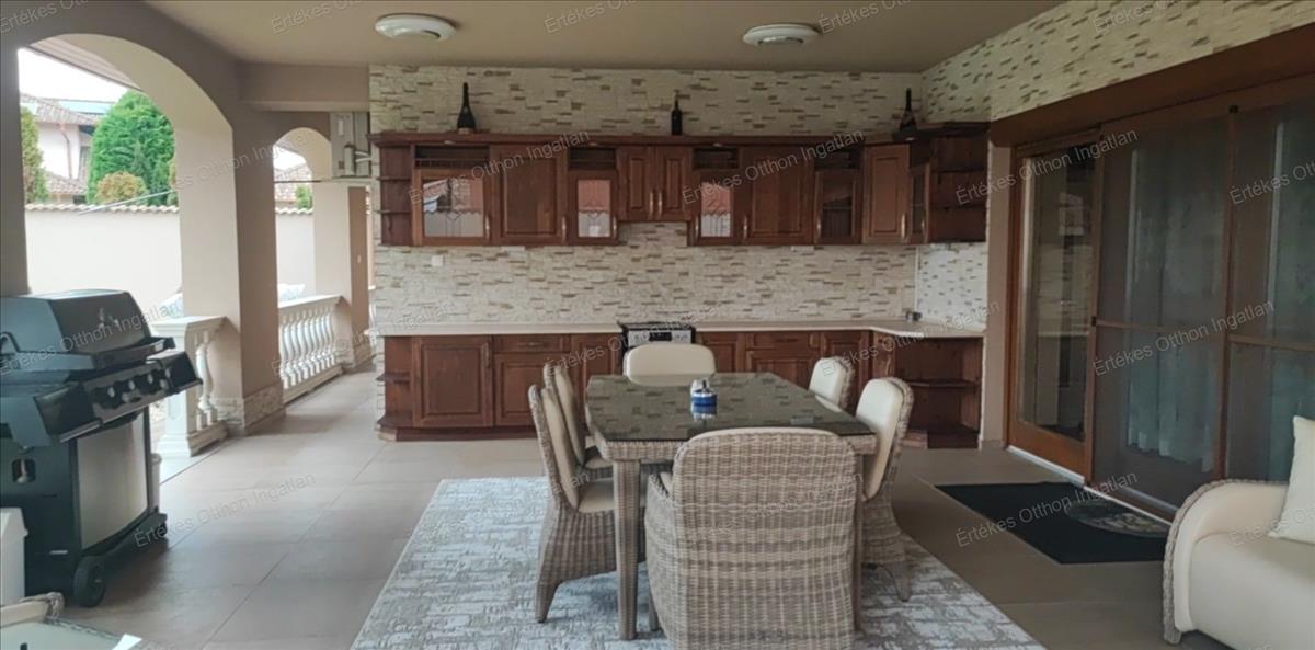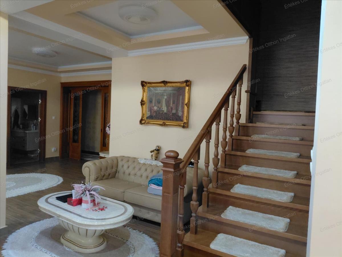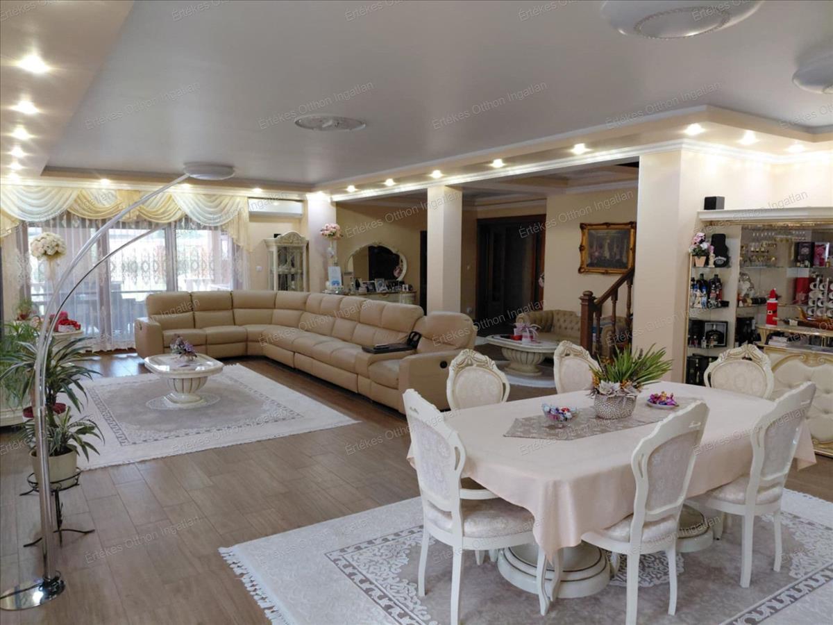 Ez a bruttó 550 m²-es, kétszintes téglaépítésű családi ház egy 1400 m²-es, gondosan parkosított telken helyezkedik el, csendes, rendezett környezetben.