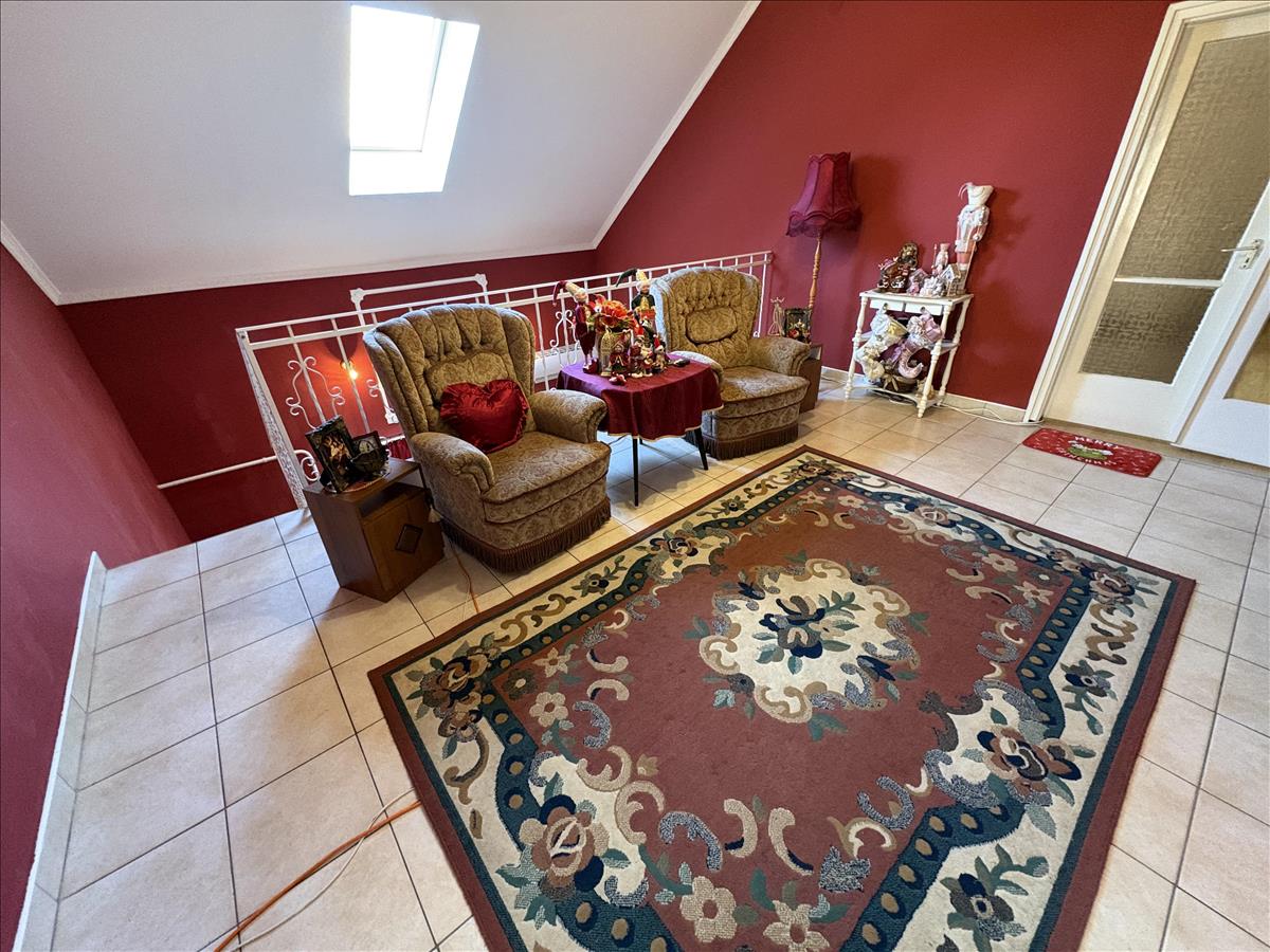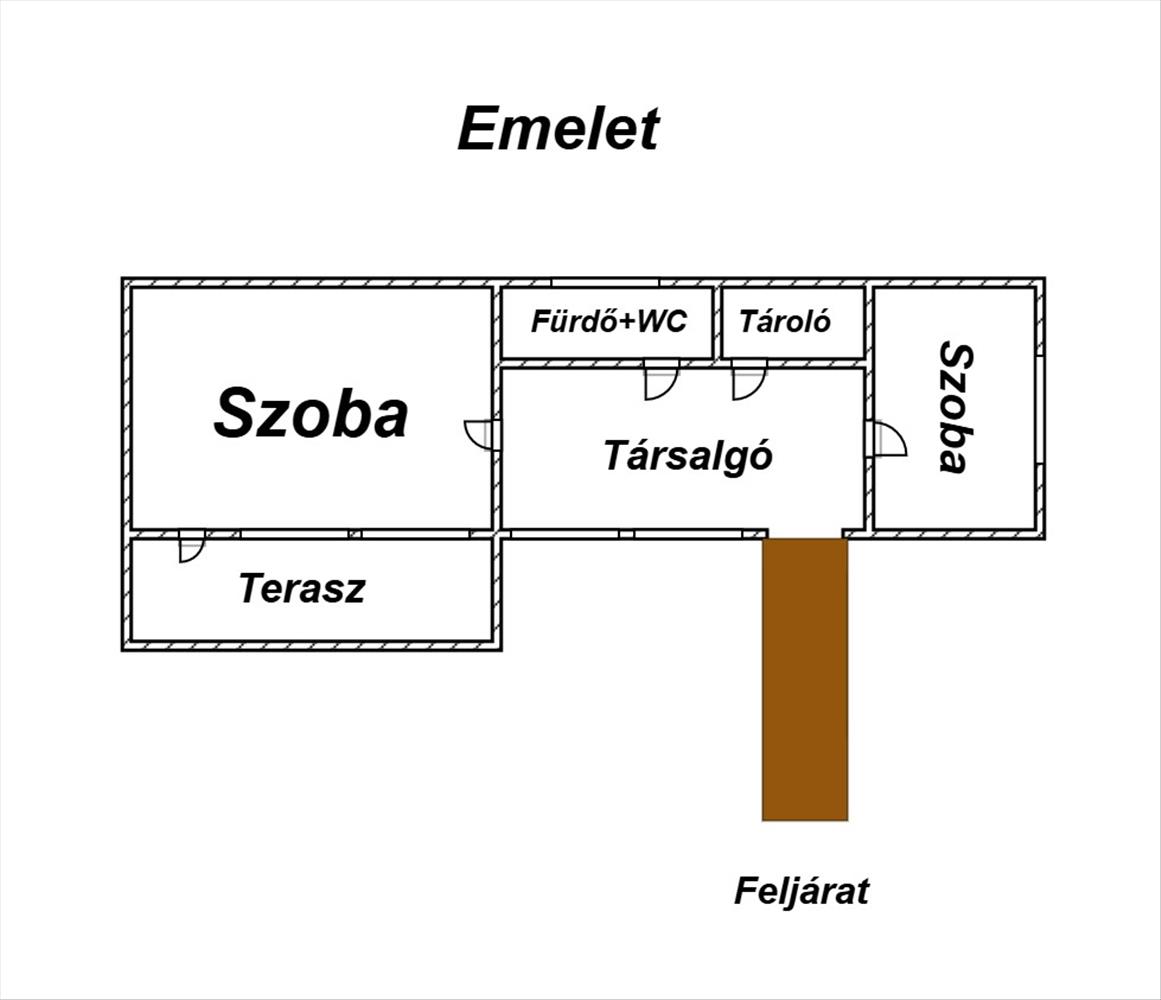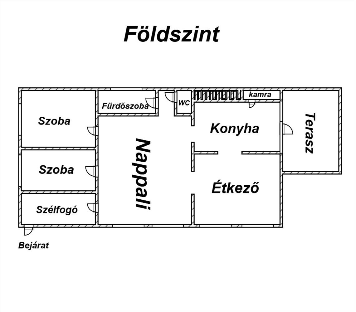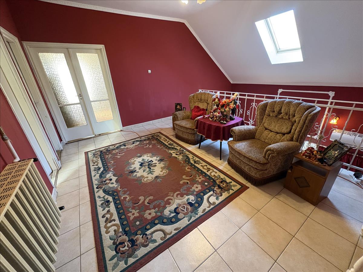 - Elosztása: Földszinti részen: szélfogó, 4 szoba, nappali, konyha+étkező, kamra, fürdőszoba+Wc ( külön helyiségben van), terasz. emeleti rész: társalgó, fürdőszoba+Wc ( egy helyiségben található ), tároló, 2 szoba, terasz.