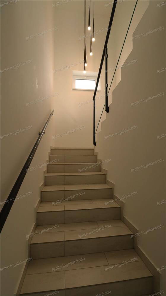 A ház kétállásos garázzsal rendelkezik, amely 42, 30 m² alapterületű, továbbá vendégparkolók állnak rendelkezésre a ház előtt. a kényelmet duplakomfortos kialakítás és modern nyílászárók (külső műanyag, belső fa) biztosítják.