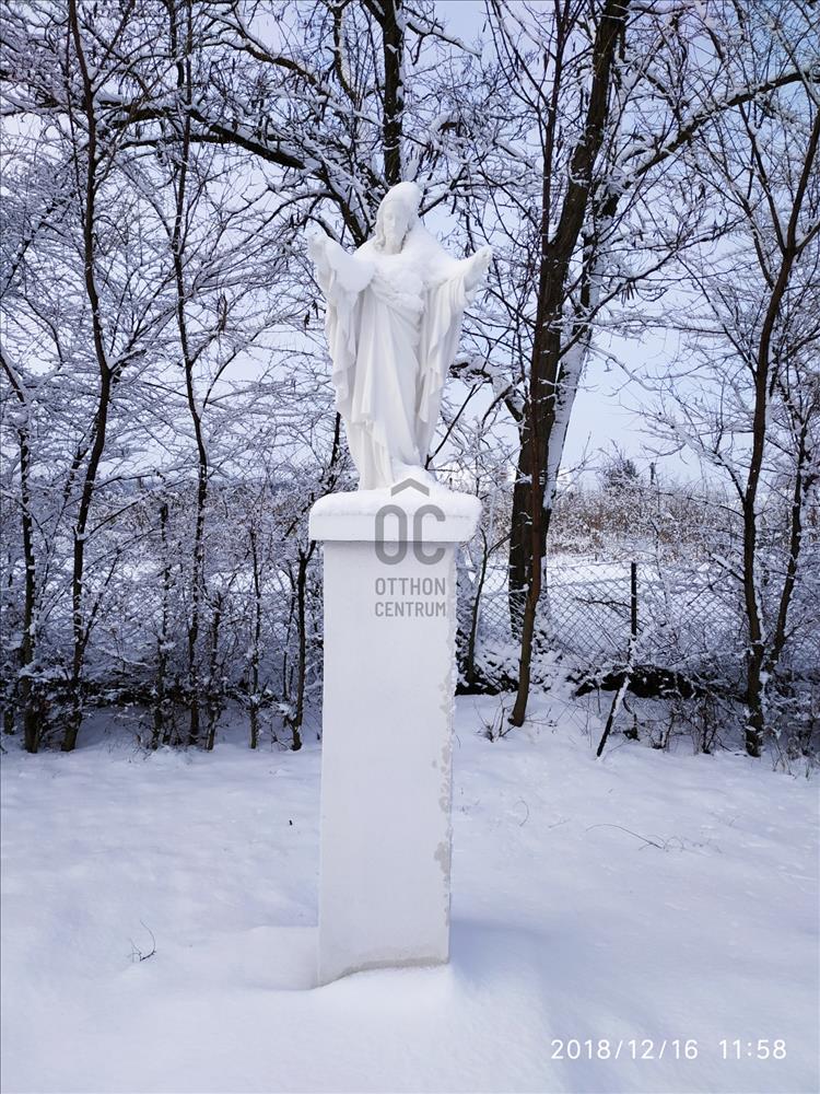 Kert: 150 cm magas Krisztus szobor, 20 éves diófa, szilva, meggy és barack fák. a telek végében egy gyönyörű fenyves erdő látványa.