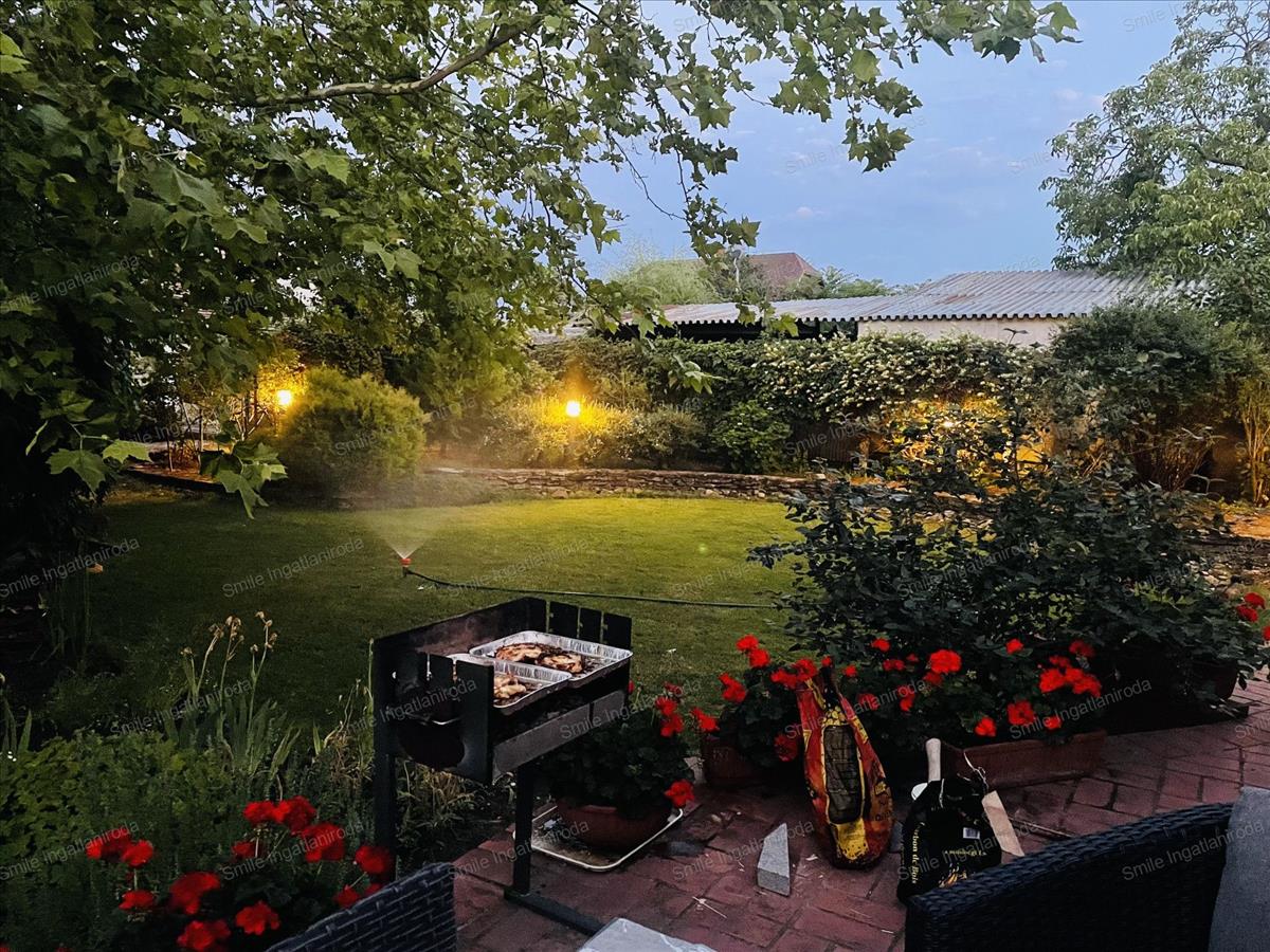 Természetközeli élmény: Az 813 m²-es telek szemet gyönyörködtető kerttel büszkélkedhet, ahol dísznövények, haszonkert, egyedi akáckerítés és még egy bográcsozó hely is várja az új tulajdonost. a kertben kialakított öntözőrendszer, LED-es világítás és egy 35 m mély fúrt kút is rendelkezésre áll.