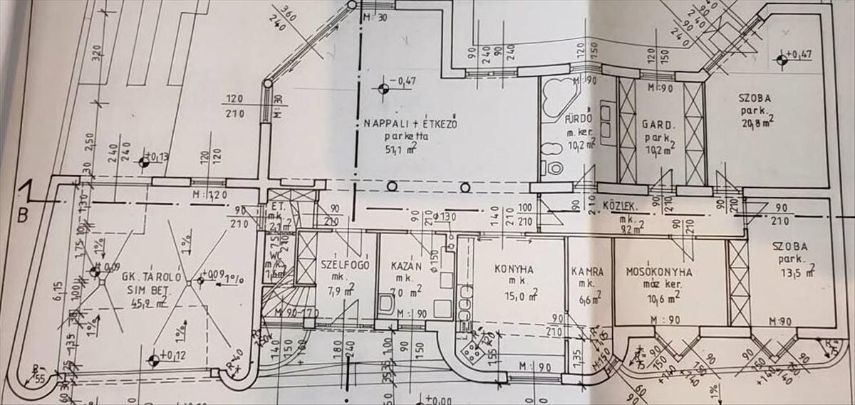 Alsó szint: 220 m² – teljesen kialakított