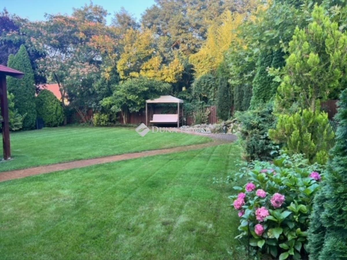 A közel 300 nm alapterületű otthon egy gondosan parkosított, csaknem 800 nm -es telken helyezkedik el, ahol az örökzöldekkel szegélyezett kert, a kerti és a telek mögötti akácos erdő garantálja a nyugalmat és az intimitást.
