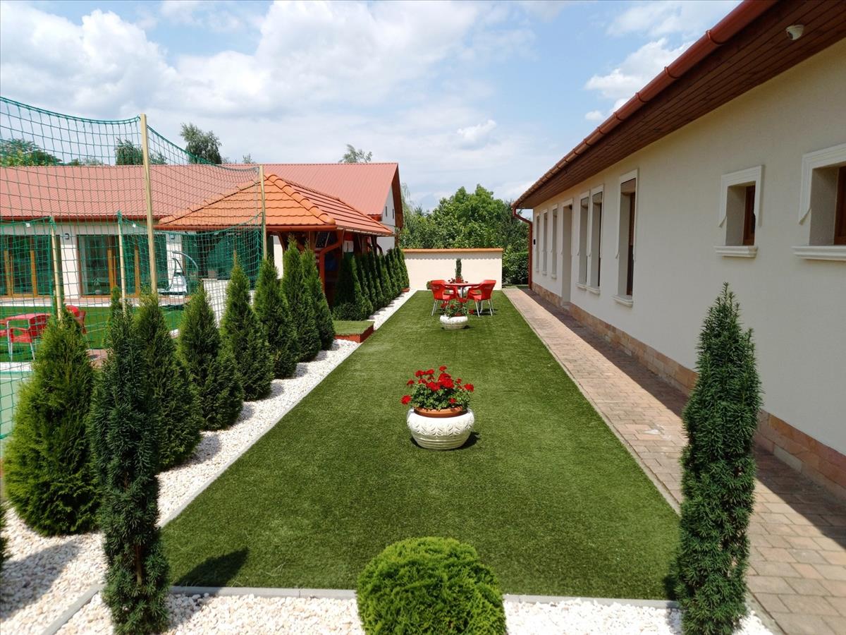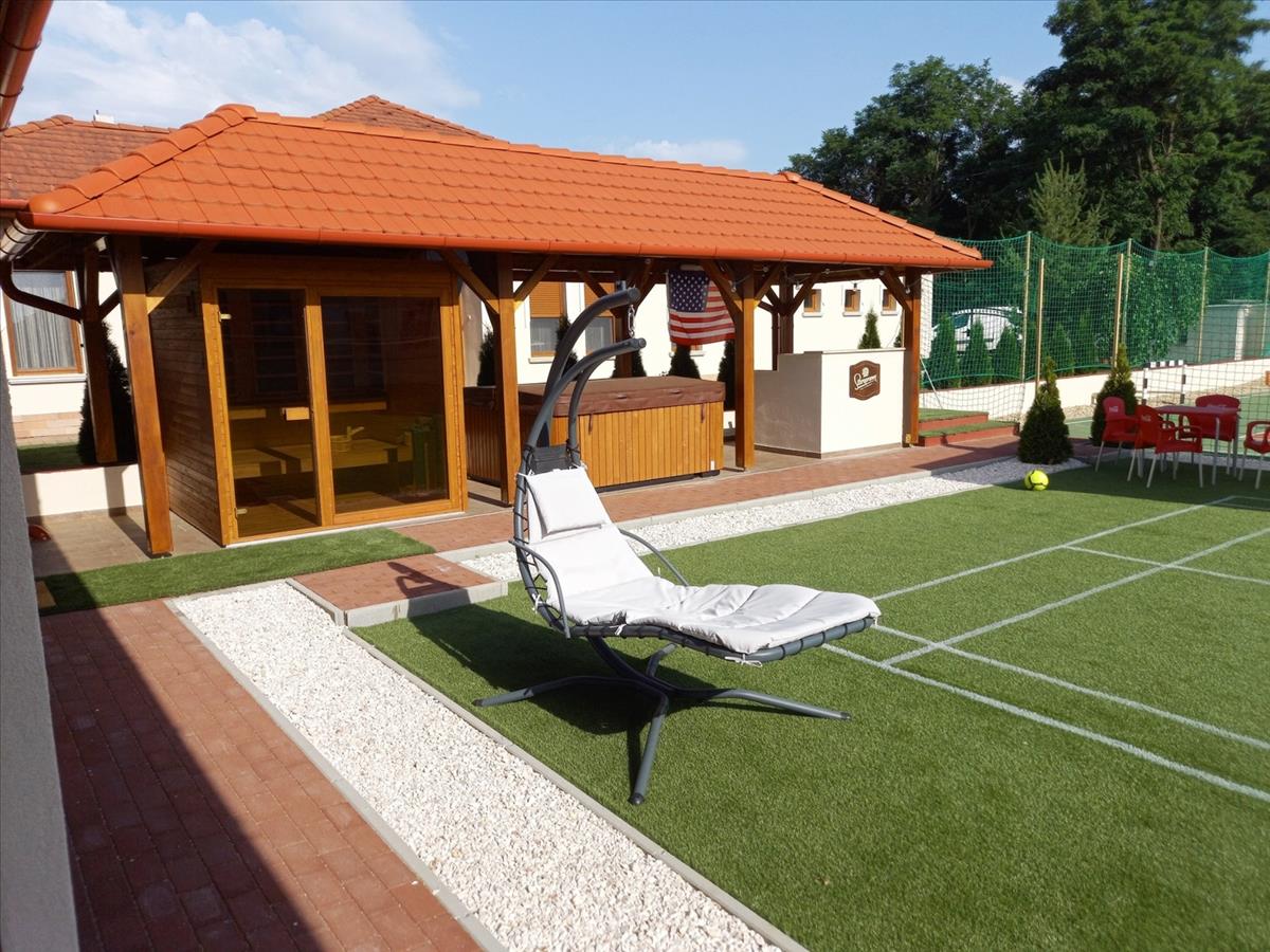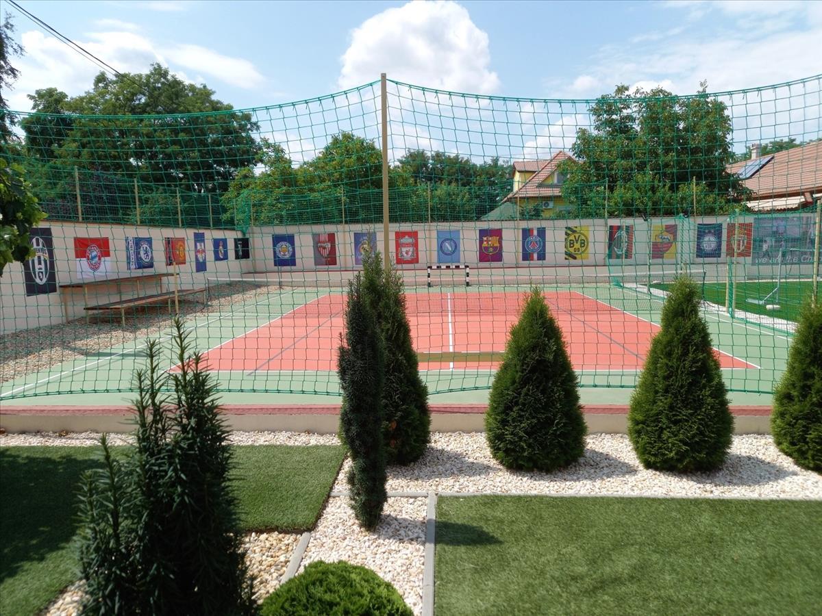 Nyíregyháza kedvelt részén, a Báthory-lakóparkban, 201 nm-es, nappali + 5 szobás, szigetelt, téglaépítésű amerikai típusú, duplakomfortos családi ház, 1662 nm-es parkosított, részben térkövezett területen, 120 nm-es különálló wellnessrésszel, gépesített medencével, teniszpályával, kifogástalan állapotban eladó!