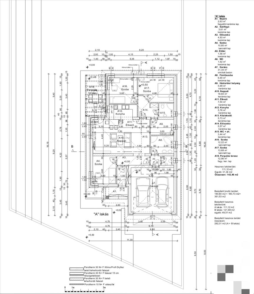 - Phoroterm 30-as téglából épült + 15 cm szigetelés- mennyezeti szigetelés 20 cm