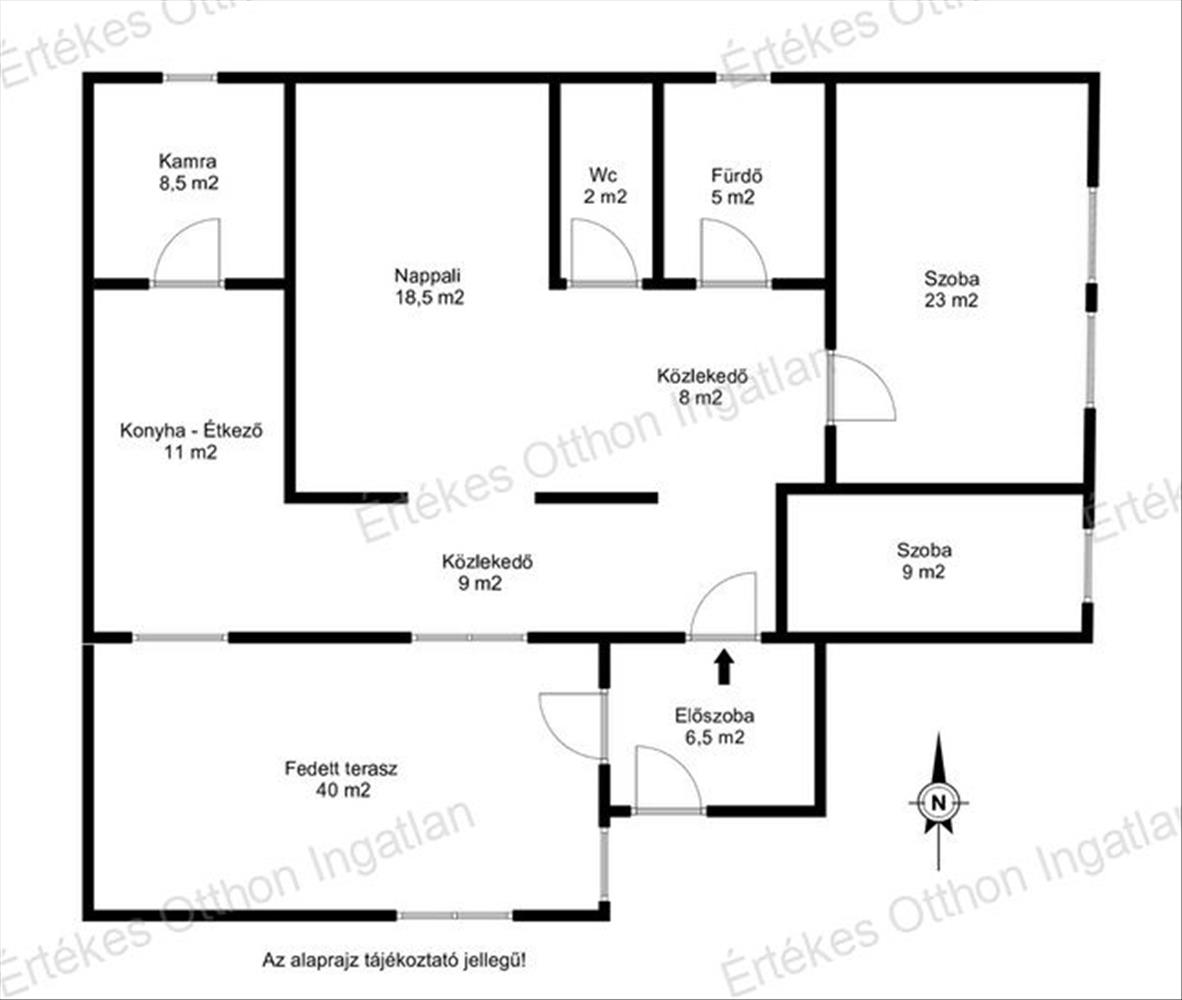 - Konyha-étkező, kamra, fürdőszoba, külön wc, közlekedő, előszoba
