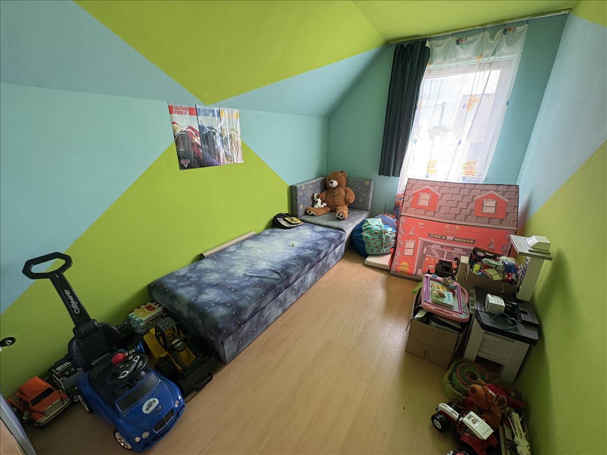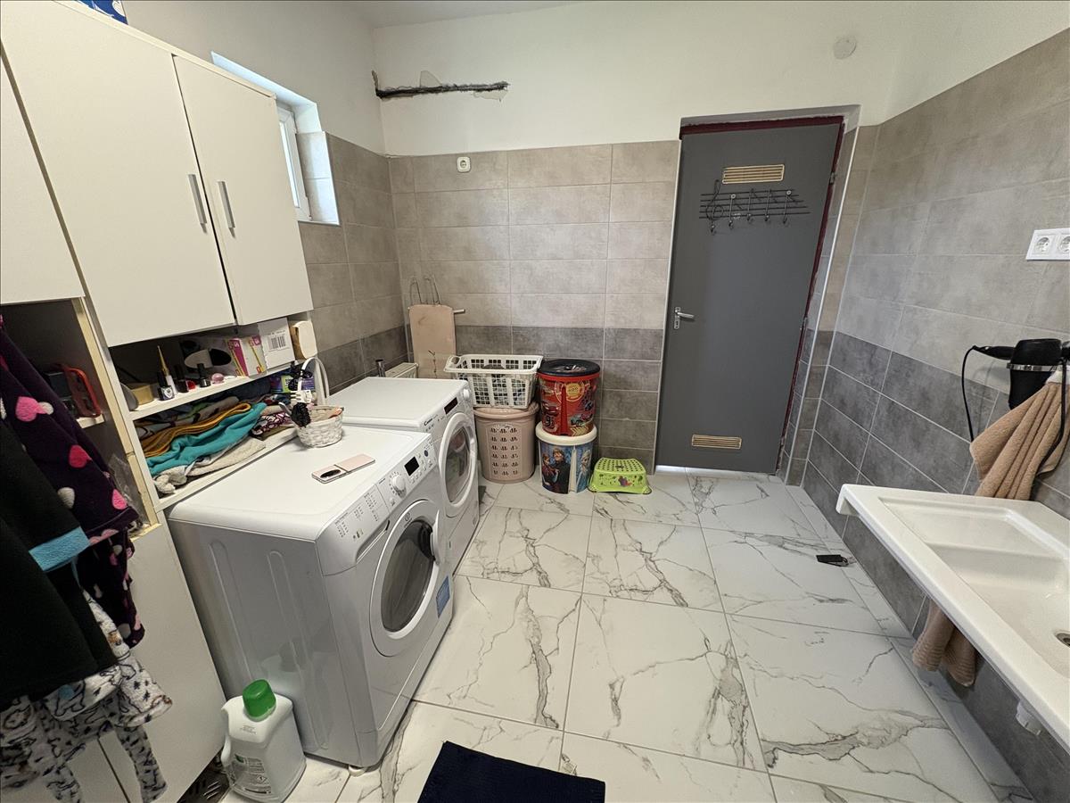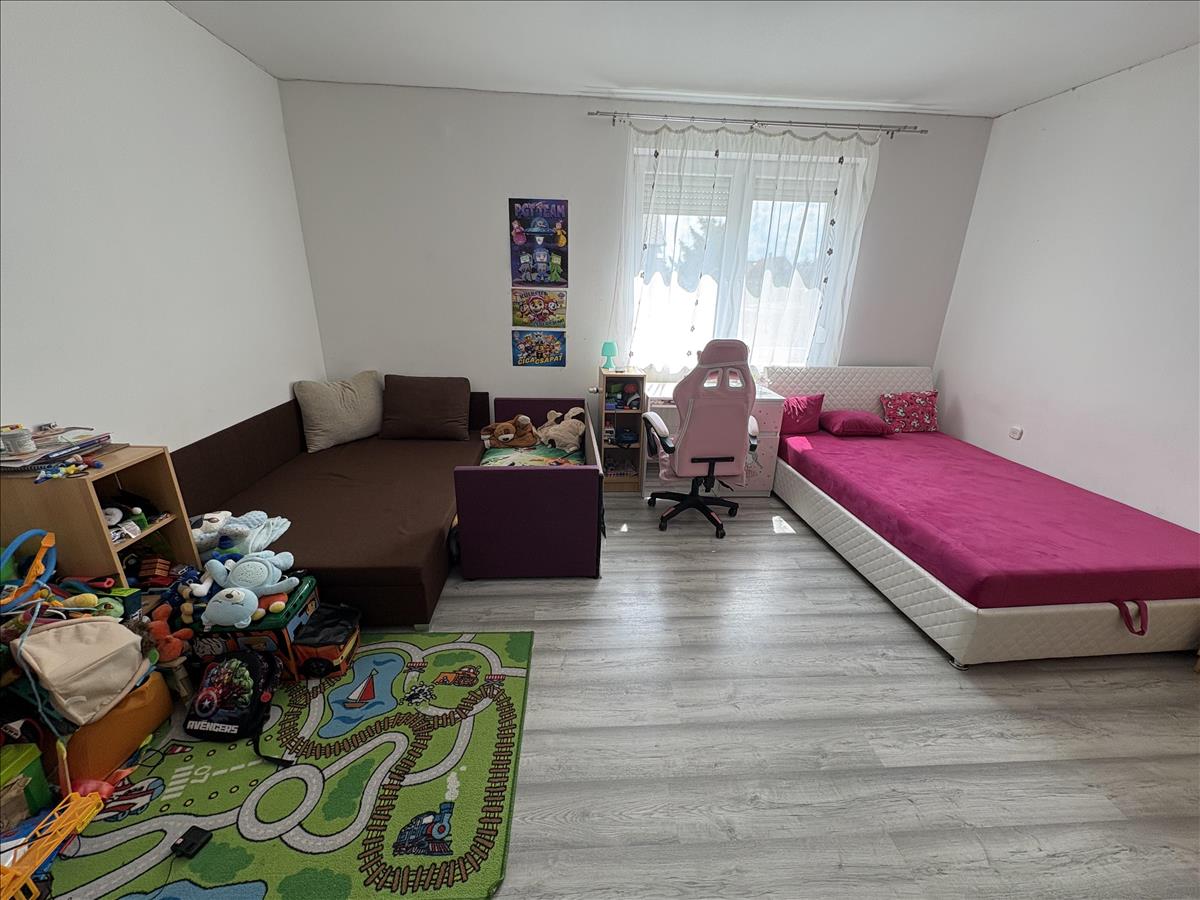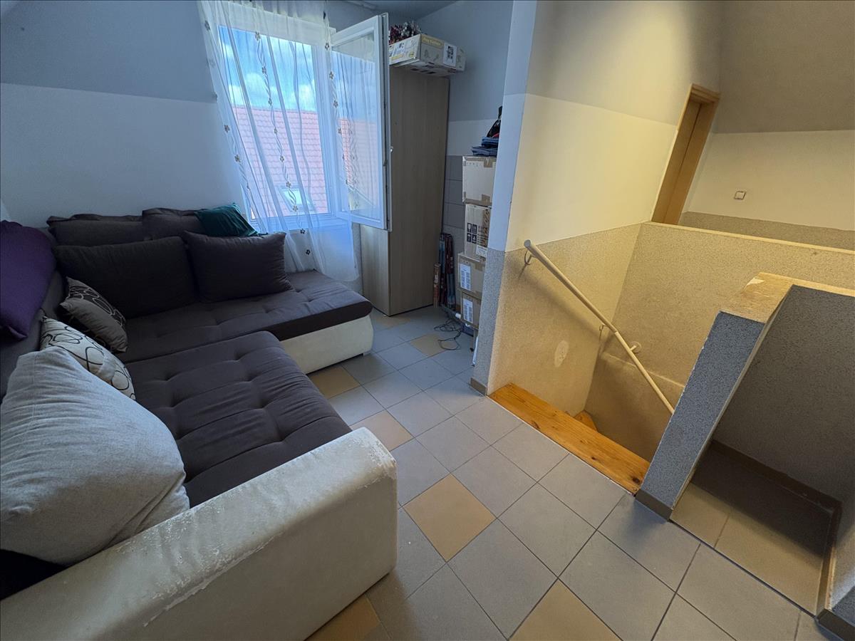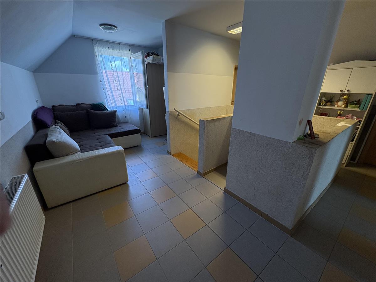 - Elosztása: Földszinten:2 szoba, Fürdőszoba, Wc, ( külön helyiségben van ), konyha+étkező, kamra, beépített terasz. Tetőtérben: 2 szoba, Zuhanyzó+Wc, konyha. a ház alatt kb. 32 Nm. -Es pince található.