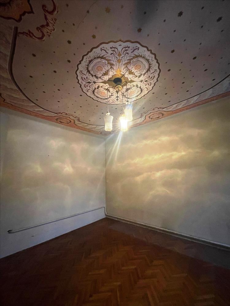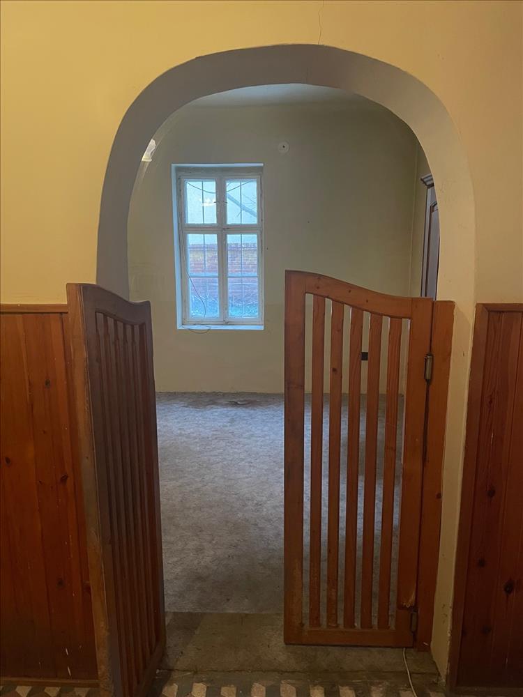 Az alsó szint néhány lépcsőfokon megközelíthető, tágas szobák fogadják az érkezőket, amely tökéletes választás lehet felújított állapotban fogadások és rendezvények elegás helyszínének.