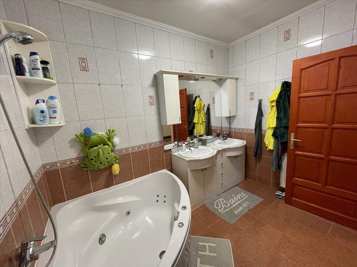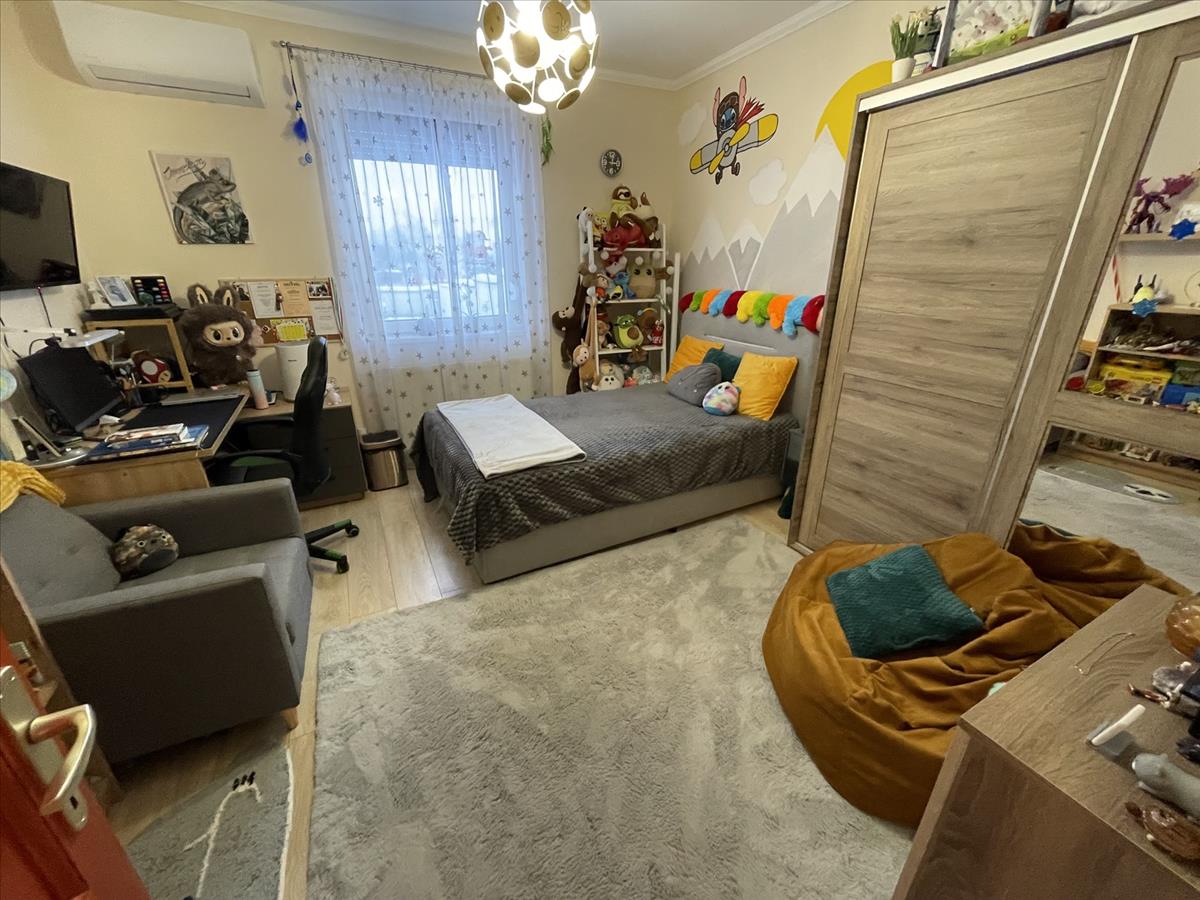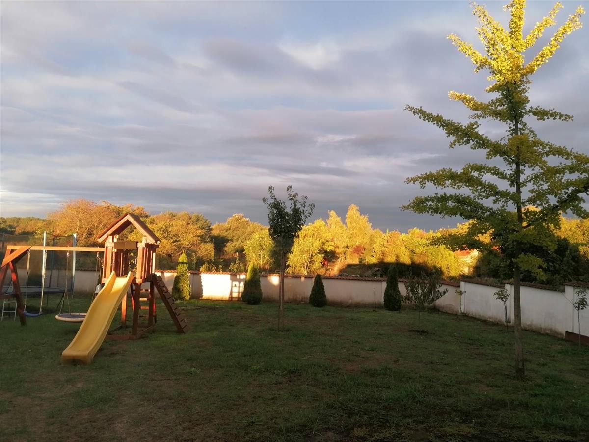 A ház műanyag nyílászárókkal, redőnnyel és szúnyoghálóval, továbbá 3 db klímával és riasztórendszerrel felszerelt. Fűtése gáz kondenzációs kazánnal, alternatív lehetőségként kandallóval megoldott. Az 1014 m²-es, gondozott udvar részben térkövezett, részben parkosított, díszfákkal beültetett, ahol külön filagória, külön fedett autóbeálló, játszótér és automata öntözőrendszer is helyet kapott. Az ingatlan elektromos kapuval zárt.