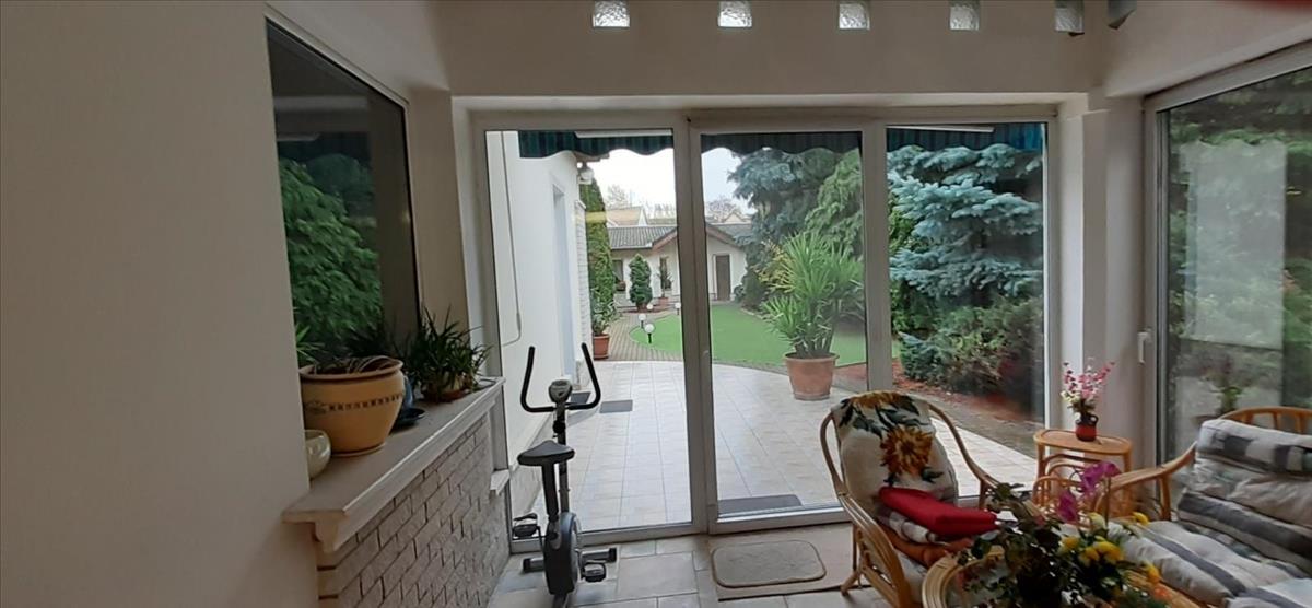Helységek: - előtér, - 3 külön nyíló szoba, - amerikai konyha +nappali +étkező egy légtérben, - kamra, - mosókonyha, - gardróbszoba, - 2 fürdő (zuhanyzós és sarokkádas), - fűtés: egyedi gáz (radiátor és padlófűtéssel), - klímás, - kertkapcsolatos télikert,