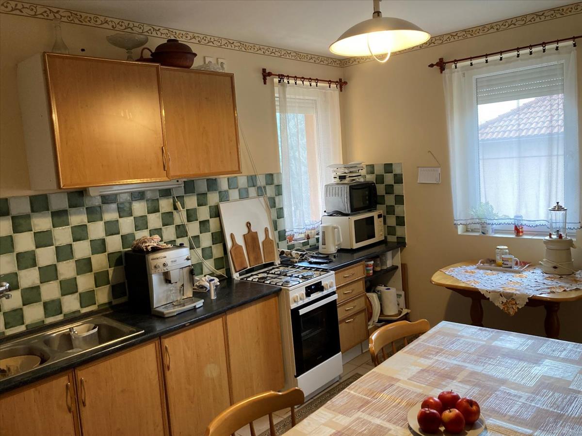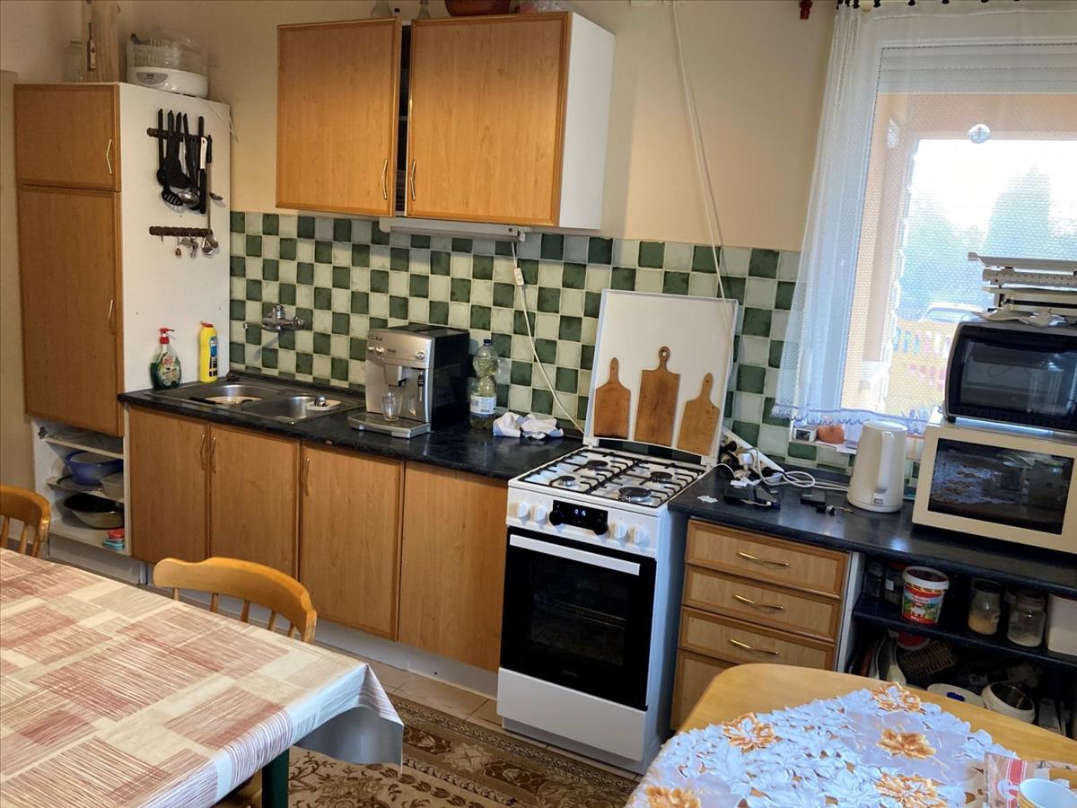 Az ingatlan 2000-ben téglából épült, műanyag nyílászárói redőnyökkel felszereltek, fűtése egyedi gáz + padló fűtésű. Földszinten egy előszoba, konyha-étkezővel, fél szoba, gardrób szoba, fürdő, és külön helyiségben található wc. Az emeleten három hálószoba, fürdőszoba került kialakításra.