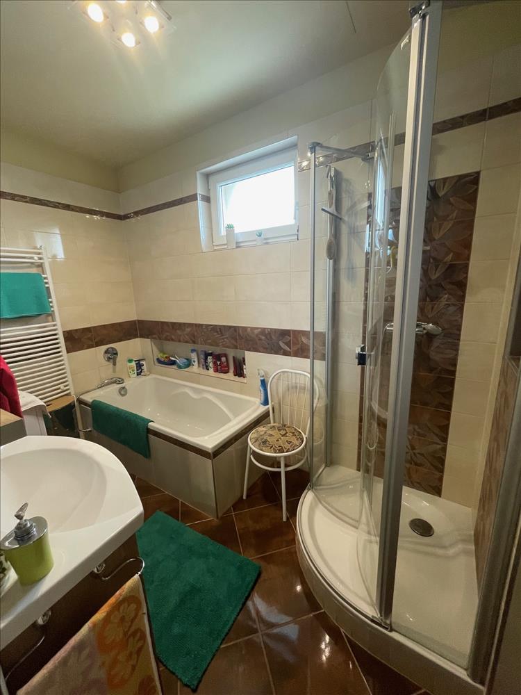 Nappali + 3 szoba, konyha, étkező, spájz helyiségek kerültek kialakításra. a fürdőszobában kád és zuhanyzó is helyet kapott, valamint a wc is külön helyiségben található. Az épülethez 18 nm-es fedett terasz tartozik, valamint részben alápincézett.