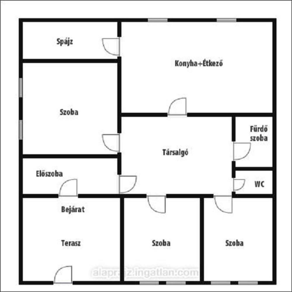 Elosztása 3 szoba, konyha, étkező, előszoba, fürdőszoba + wc (külön), terasz.