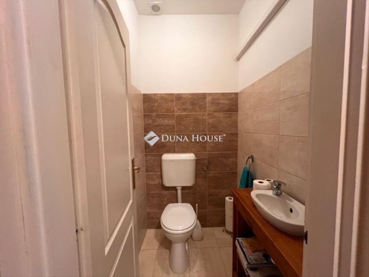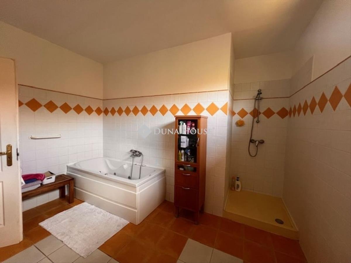 A fürdőszoba tusolóval, fürdőkáddal felszerelt, a wc külön helyiségben kapott helyet.