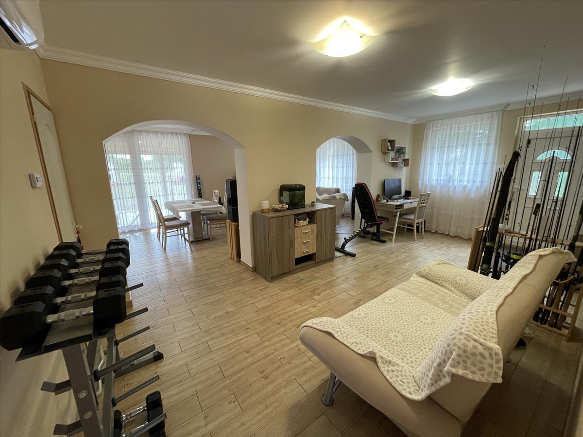 Nyírszőlős csendes, zöldövezeti részén, zsákutcában kínálunk eladásra egy 1999-ben épült, 89 m²-es, teljes körűen felújított, azonnal költözhető családi házat. Az ingatlan jelenlegi elosztása két különnyíló, tágas szobát és egy világos, amerikai konyhás nappalit kínál, azonban kis ráfordítással könnyedén háromszobássá alakítható. a fűtésről korszerű gázüzemű kondenzációs kazán gondoskodik, amely vegyes tüzelésű kazánnal is kiegészül, padlófűtéssel és radiátorokkal. a ház kiváló hőszigeteléssel rendelkezik (10 cm), műanyag nyílászárói redőnnyel és szúnyoghálóval szereltek, a nyári komfortot klíma biztosítja. a konyha egyedi tervezésű beépített bútorral és gépesítéssel kerül átadásra. Az udvarban kétállásos garázs elektromos kapuval, különálló kazánház és tároló is helyet kapott. a telek 3605 m², hátsó részén gondozott gyümölcsfákkal (három sor szilvafa), az utcafronti kapu szintén elektromos, távolról, Wi-Fi alkalmazással vezérelhető külső világítással felszerelve.