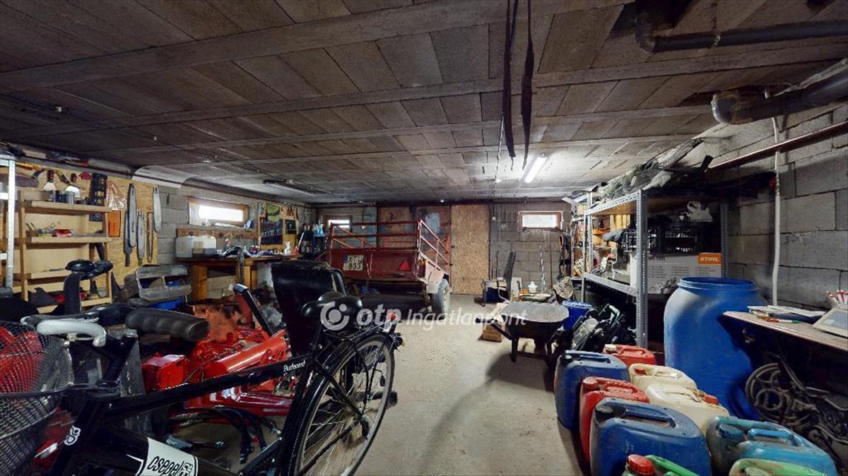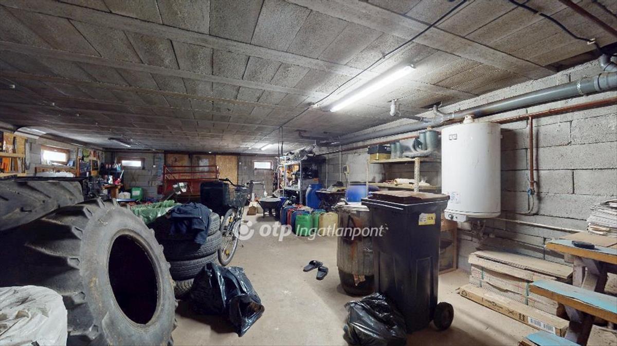 A pince két részre tagolódik: az első részben két autó beállására alkalmas garázs található, mögötte konyha és étkező lett kialakítva, amely akár nyári konyhaként is használható.