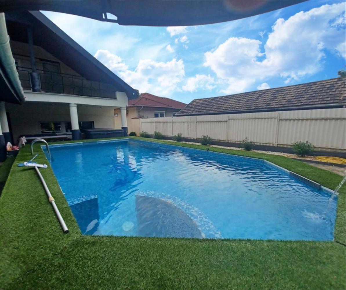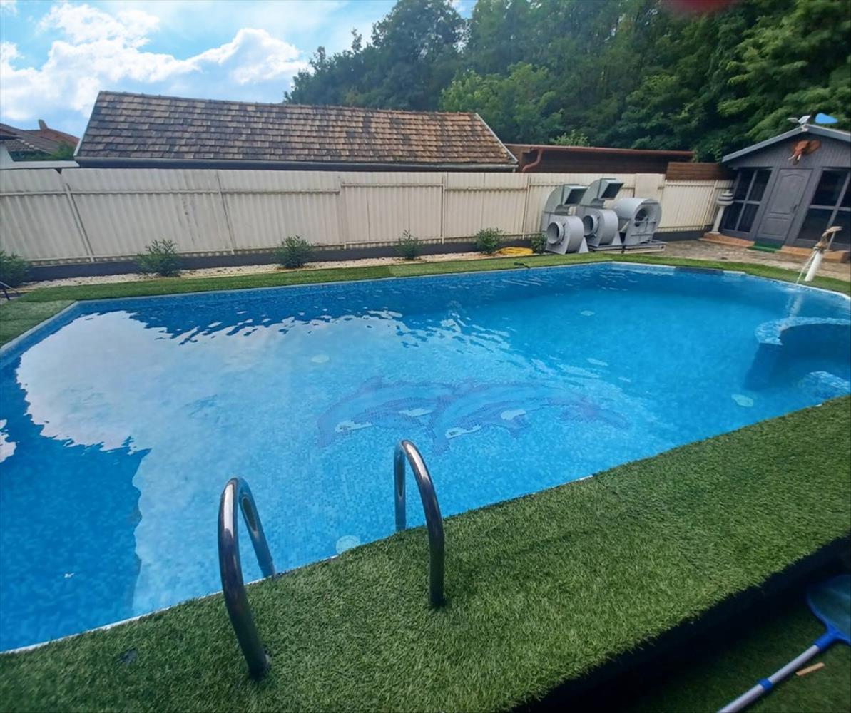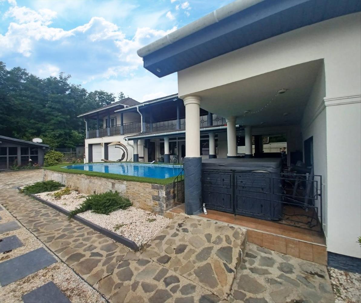 A ház önellátó 22 kW-os napelemrendszerrel és hőszivattyús fűtéssel rendelkezik, ami nemcsak környezetbarát, hanem rendkívül gazdaságos is. Az udvar igényesen térkövezett, parkosított, a 40 m²-es medence a nyári pihenés tökéletes helyszíne, míg a fedett filagória borospincével a baráti összejövetelek és családi alkalmak hangulatos központja.