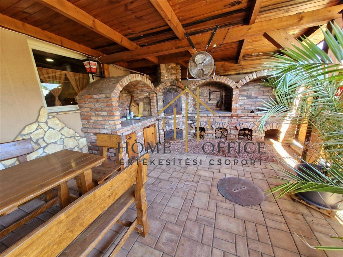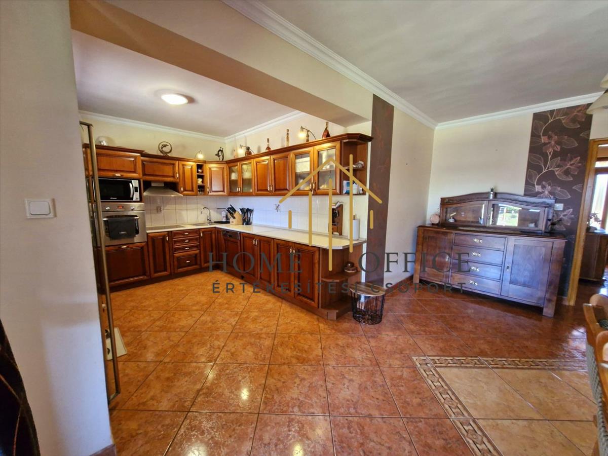 A 150 nm -es családi ház az üzleti résztől elszeparáltan helyezkedik el, szépen füvesített kertrésszel, mesterséges kis tóval, filagóriával, sütögető hellyel. Nappali+3 szoba, fürdőszoba, nagy étkező-konyha, külön wc, mosókonyha és gardrób. a fűtést egyedi gázkazán biztosítja, de a házban egy vízteres épített cserépkályha kandalló van a fűtésrendszerre kötve, ami mind a ház, mind az üzlethelyiség fűtését biztosítja. a ház tetőterében egy szoba beépített, de az egész tetőtér beépíthető.