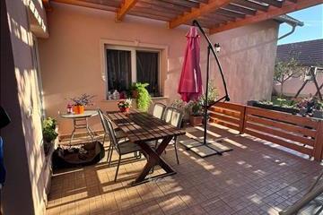 Igazi minőség és nyugalom Nyúl központjában. Eladó egy csendes kis zsákutca utolsó háza. Óvoda és az iskola a közelben.A ház 2005-ben épült, jól átgondolt egyedi igények alapján, kiváló minőségű anyagokból. a tulajdonosok nagy figyelmet fordítottak az energiatakarékosságra így napelem rendszert építettek ki. Bár a házat 44-es porotherm téglából építették, kapott még 5 cm szigetelést, a tökéletes hőmegtartás érdekében. Van fúrt kút, szivattyúval. a házban 3 hálószoba, nappali, két fürdőszoba és konditerem szolgálja a benne lakók kényelmét. a konyhában gondosan megtervezett helytakarékos, igényes egyedi konyhabútor, minden extrával ellátva. a nappaliban és a szobákban egyedi méretre készült bútorok vannak, rengeteg tárolási lehetőséggel. a fűtést gázkazán biztosítja, illetve egy szép cserépkályha, ami igazán hangulatossá teszi a hideg téli estéket és önállóan is befűti az egész házat. Az emeleti tetőtér jelenleg részlegesen van beépítve, előtér és konditerem van fent. a tetőtér többi része, kb. 70 m2-es terület még igény szerint kialakítható. a házban van garázs, amiből rögtön az előszobába vezető ajtón tudunk a hideg és az eső elől elzártan, kényelmesen kipakolni az autóból. a nagy 35 m2-es hangulatos pergolás terasz biztosítja, hogy egy hosszú nap után megpihenhessünk és gyönyörködhessünk az udvarban virágzó bokrok, gyümölcsfák között, vagy ha kedvünk van kicsit kertészkedhetünk is a konyhakertben. Az udvaron továbbá van még egy kedves kis 30 m2-es melléképület, ami kis átalakítás után akár vendégházként is funkcionálhat.