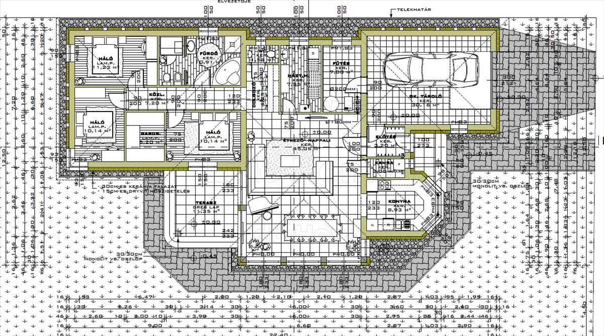 A 170, 5 m2-es lakótér egy szinten helyezkedik el, ami a mindennapi használat során kényelmes és praktikus megoldást jelent. a központi élettér egy közel 45 m2-es amerikai konyhás nappali étkezővel, amely világos, tágas és jól bútorozható, ideális családi együttlétekhez. a konyha gépesített, bőséges tárolóhellyel és kamrával egészül ki.