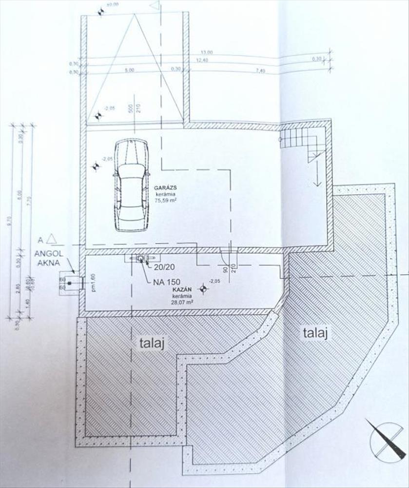 Pinceszint 104 m2 (2 állásos garázs: 75, 59 m2, Kazánház: 28, 07 m2)