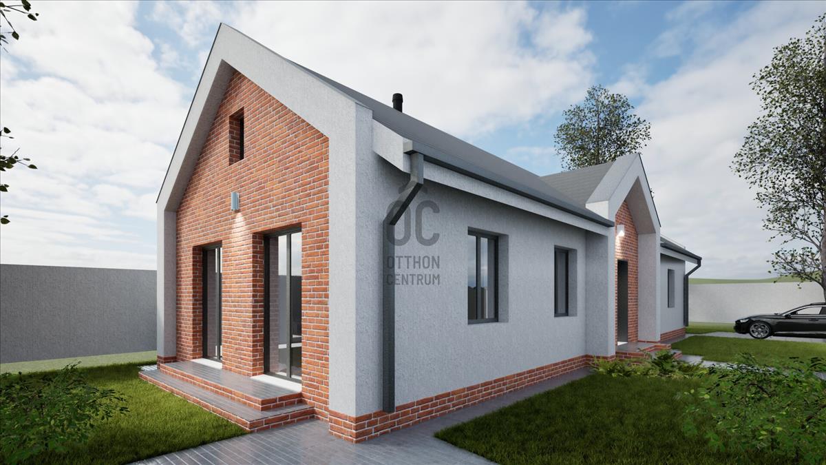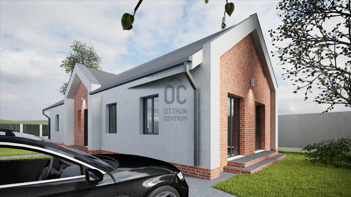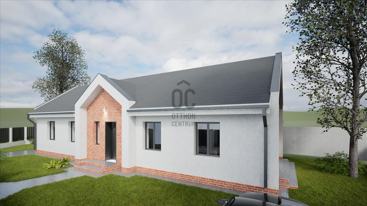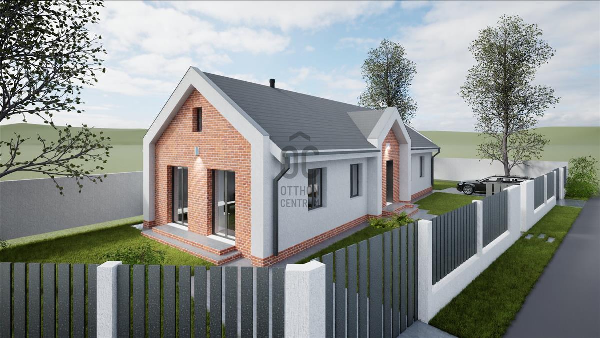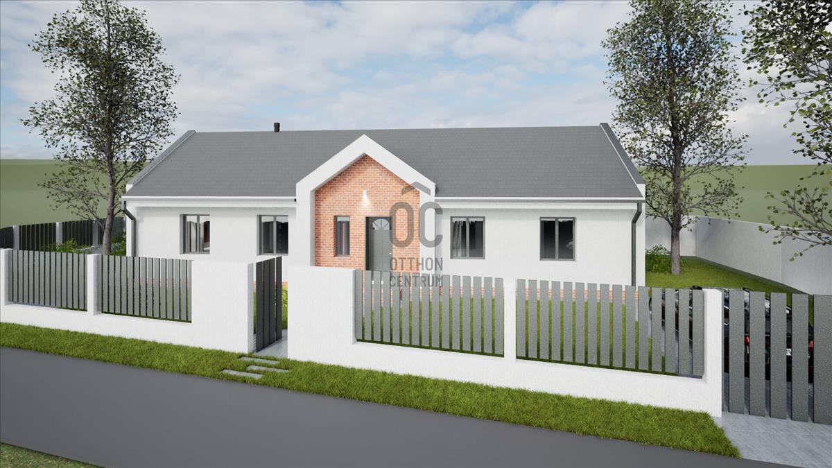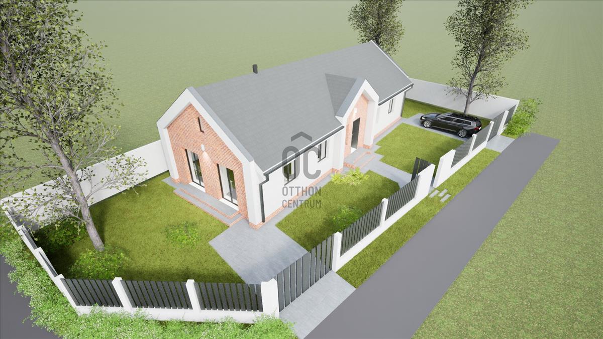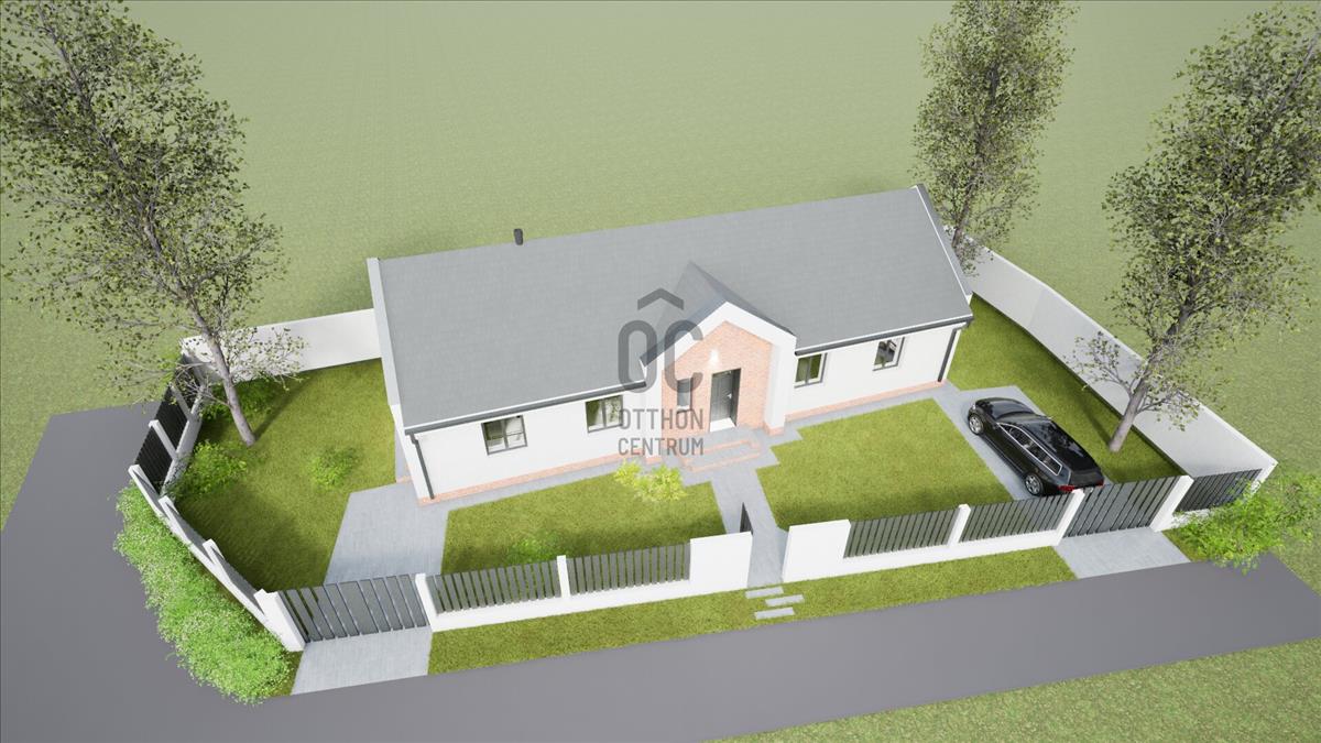 Ócsán, nyugodt, zöld környezetben, aszfaltozott utcában, saroktelken épül ez a nettó 103 m²-es (bruttó 130 m²), földszintes, önálló családi ház, hőszivattyús fűtéssel, 460 m²-es telken.