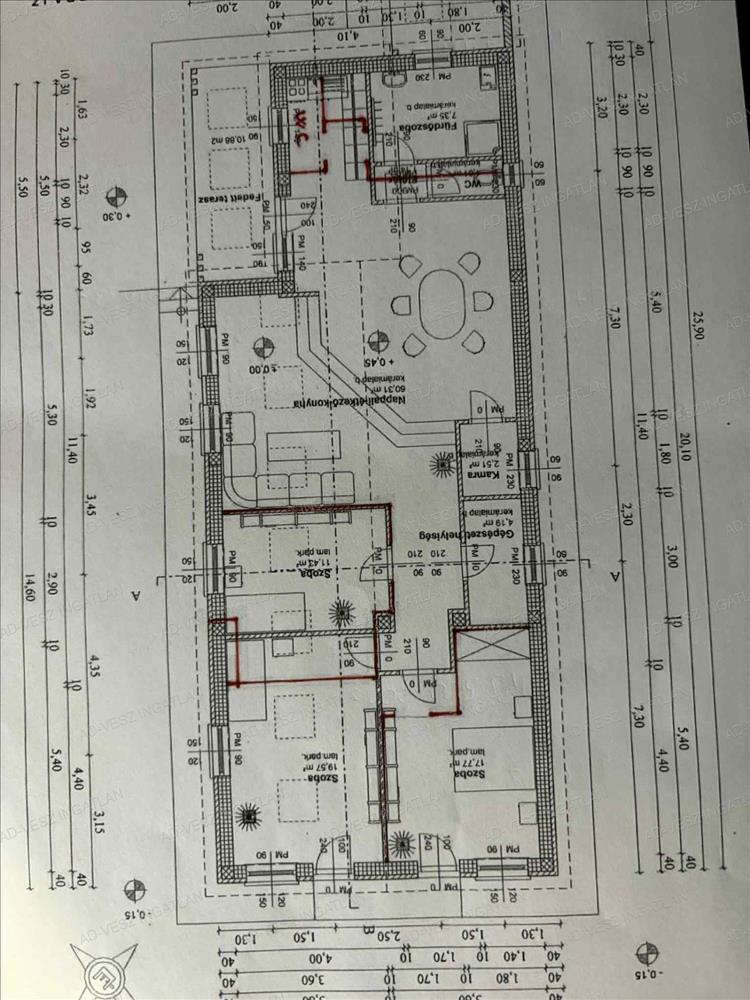 A házhoz tartozó telekrész 654m2. Ennek tereprendezését, térkövezését, az öntöző rendszer kiépítését is tartalmazza az ár.