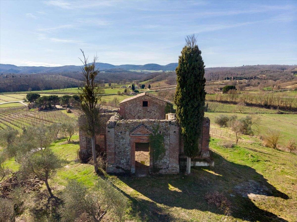 Eladó Sinalungában, Siena megyében egy három hálószobás ház, amely egy egykori templom környezetében áll, és a nyílt, varázslatos panorámát uralja.