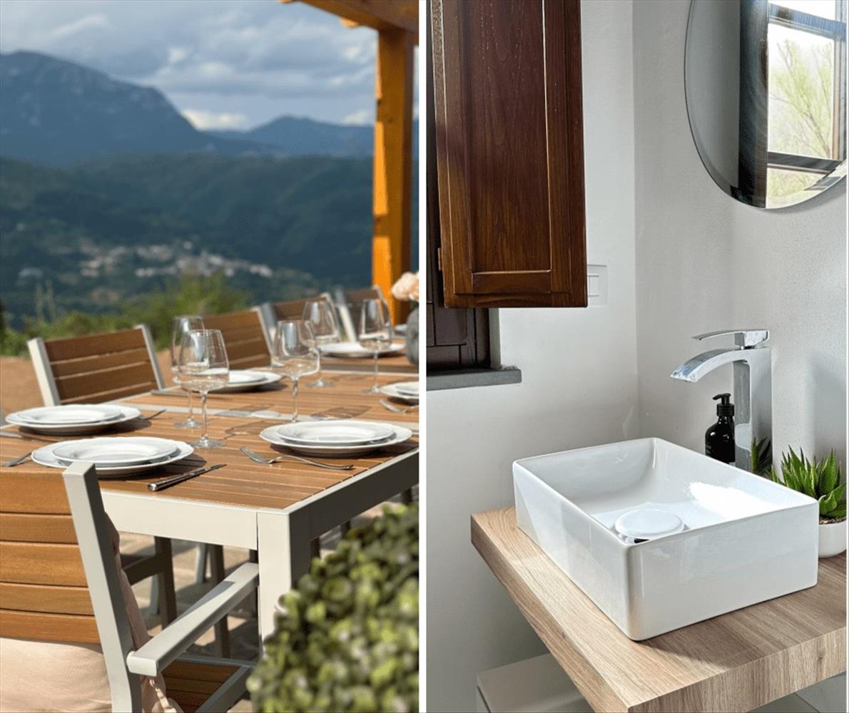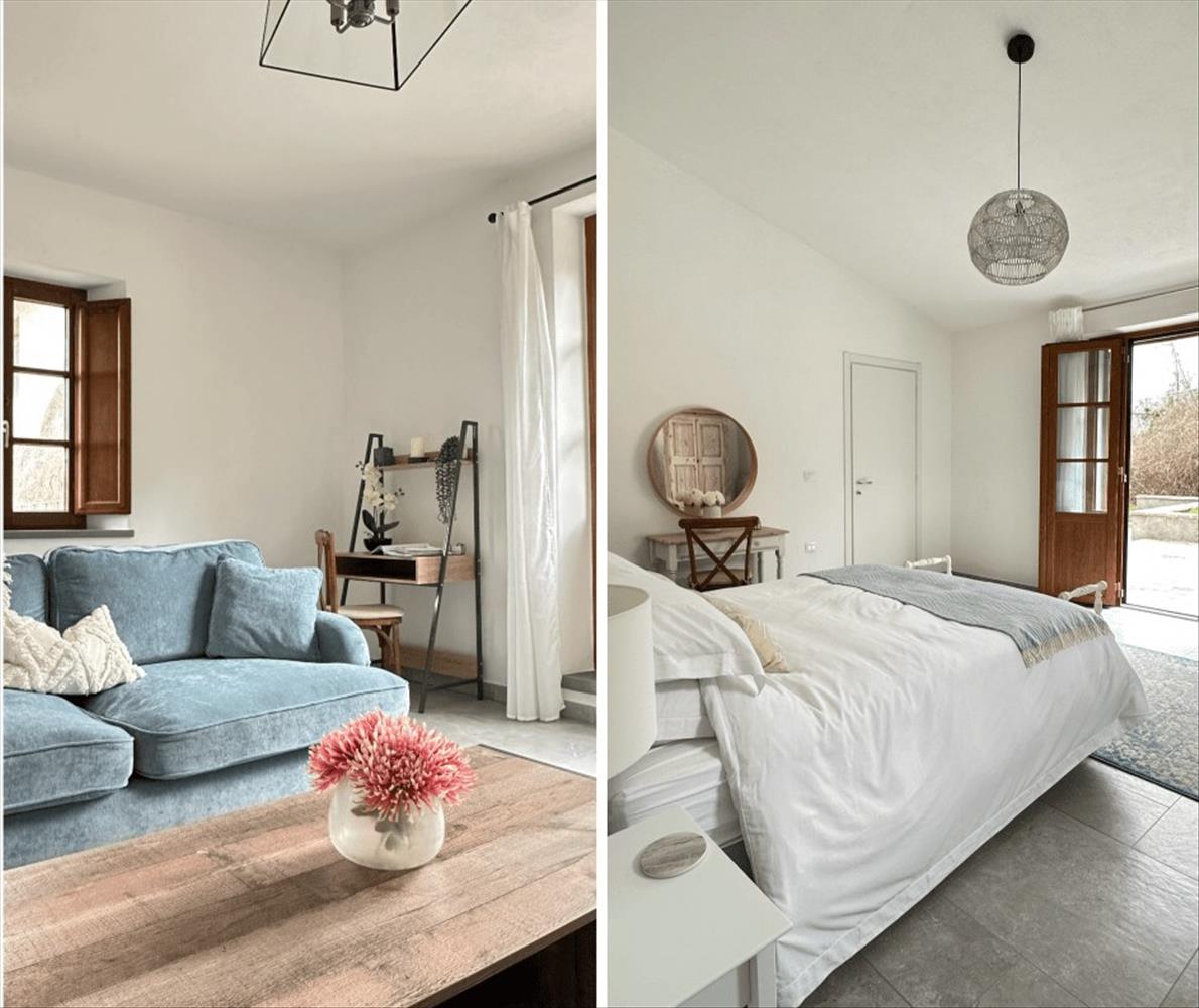 La Casa di Pietra - A kőház körülbelül 183 m²-es alapterületű, tágas nappalival rendelkező villa, 5 hálószobával, 5 fürdőszobával és 1 további WC-vel a földszinten. A házat minden berendezéssel, 2 komplett ágyneműkészlettel és kerti bútorokkal együtt adják el, hogy a vásárló eldönthesse, folytatja-e a személyes használatot vagy a bérlést, vagy a kettő keverékét. Minden hálószoba egyedileg berendezett, a puha textilek színe összehangolt a gyönyörű mintás csempékkel, így minden hálószoba egyedi stílust képvisel. Az egész ház új elektronikai és vízvezeték-rendszerekkel rendelkezik.