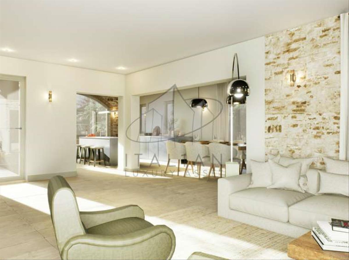 Földszint: Az otthon szíve a nagyvonalú portico alatt fekszik, egy al fresco szalon, ahonnan a völgy legelbűvölőbb kilátása nyílik, ideális a nyugodt étkezéshez és az esti aperitívhez.