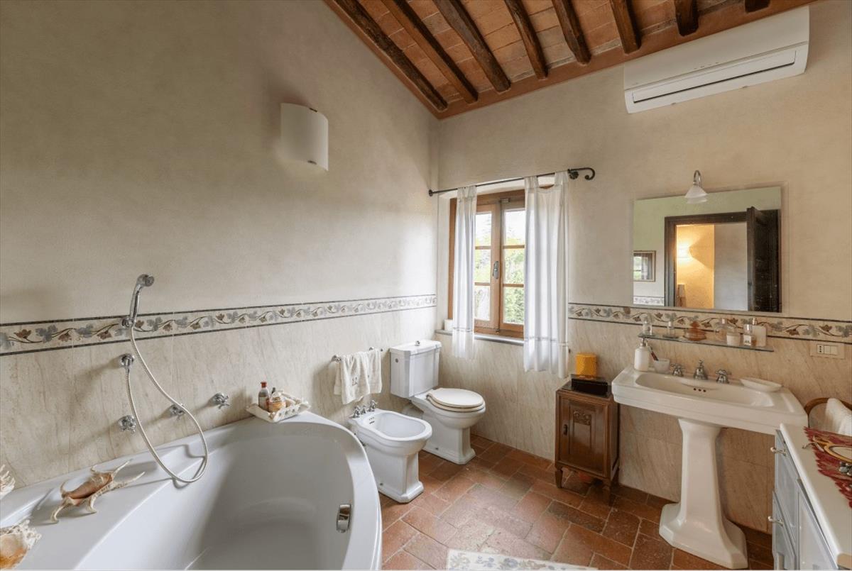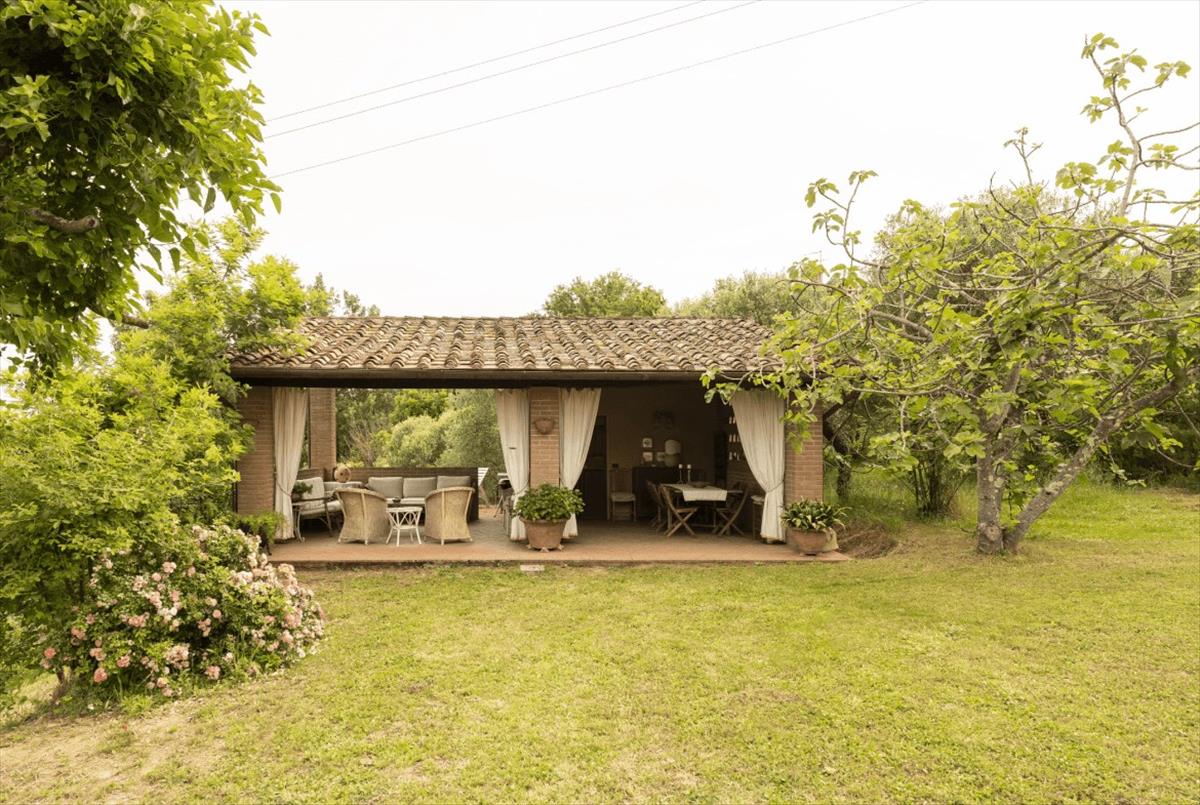 Elegáns, restaurált félig különálló vidéki ház kerttel, csodálatos fák, olajfák és 3,5 ha földterülettel. Az ingatlanon jelenleg a kerti szerszámok letétjeként szolgáló félpajta található. A modern és toszkán részletek tökéletes keveréke, például a fagerendák és a gerendák, valamint az olasz terrakotta csempe.A magánélet és a nyugalom állandó ebben a házban, kerttel és magánfölddel körülvéve. Az ingatlan félig különálló; a másik része egy parasztház, amely szintén eladó, de némi felújításra van szükség. Eladják körülbelül 180 000 €-ért.