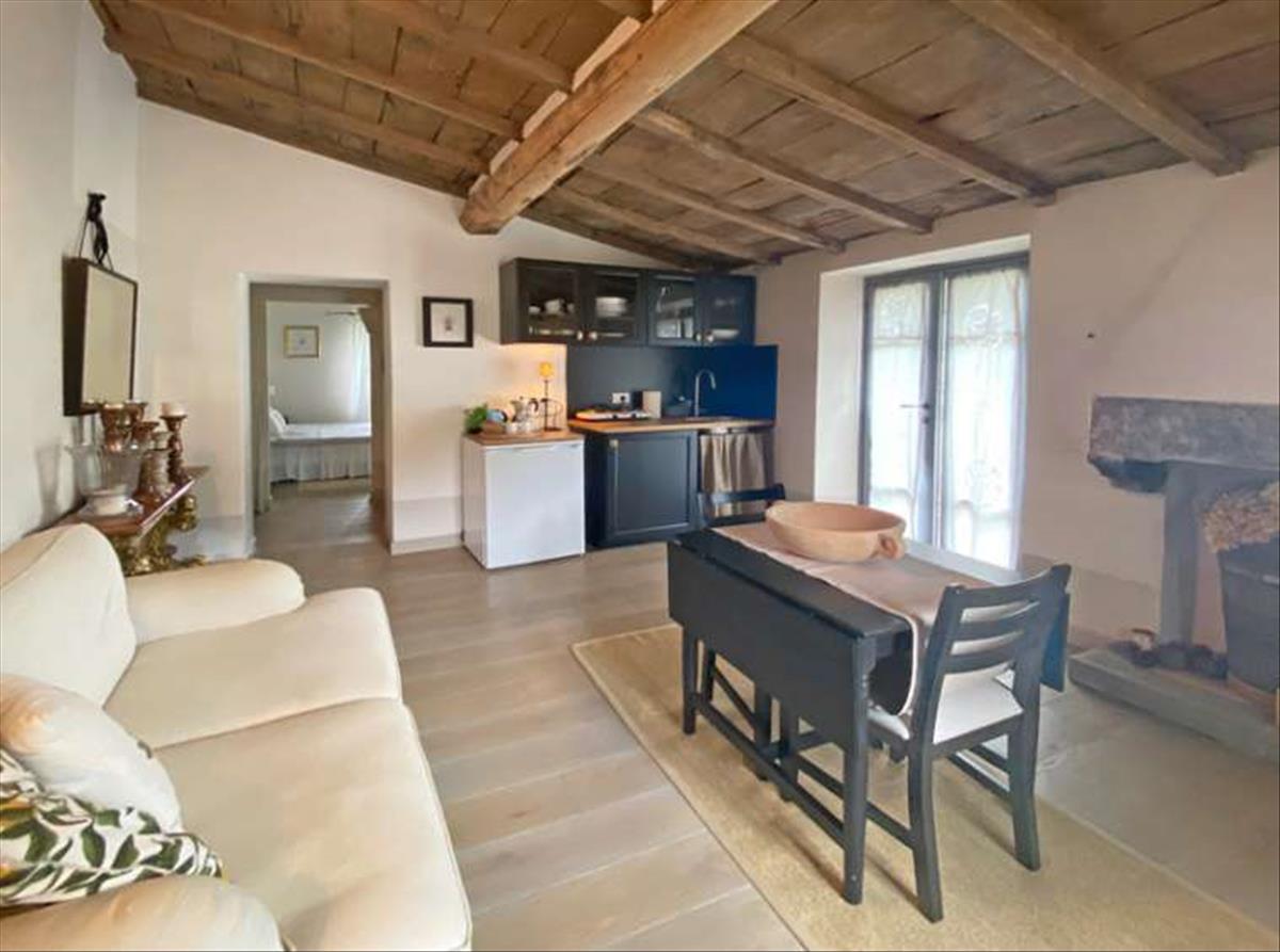 Első apartman: Ez az apartman a földszinten található, és egy tágas nappalival, kandallóval és fehér, sugárzó mennyezettel rendelkezik, amely fényt ad a szobának. Innen a nagy séf-konyhájába a szomszédos kamrába, amely minden modern készülékkel fel van szerelve, miközben megőrzi az elegáns toszkán sármját. Itt egy nem hivatalos étkezőasztal is található. Ezen az emeleten három hálószoba található, közülük az egyiknek saját fürdőszobája van, továbbá van egy kiegészítő szolgálati fürdőszoba és egy gépészeti helyiség.