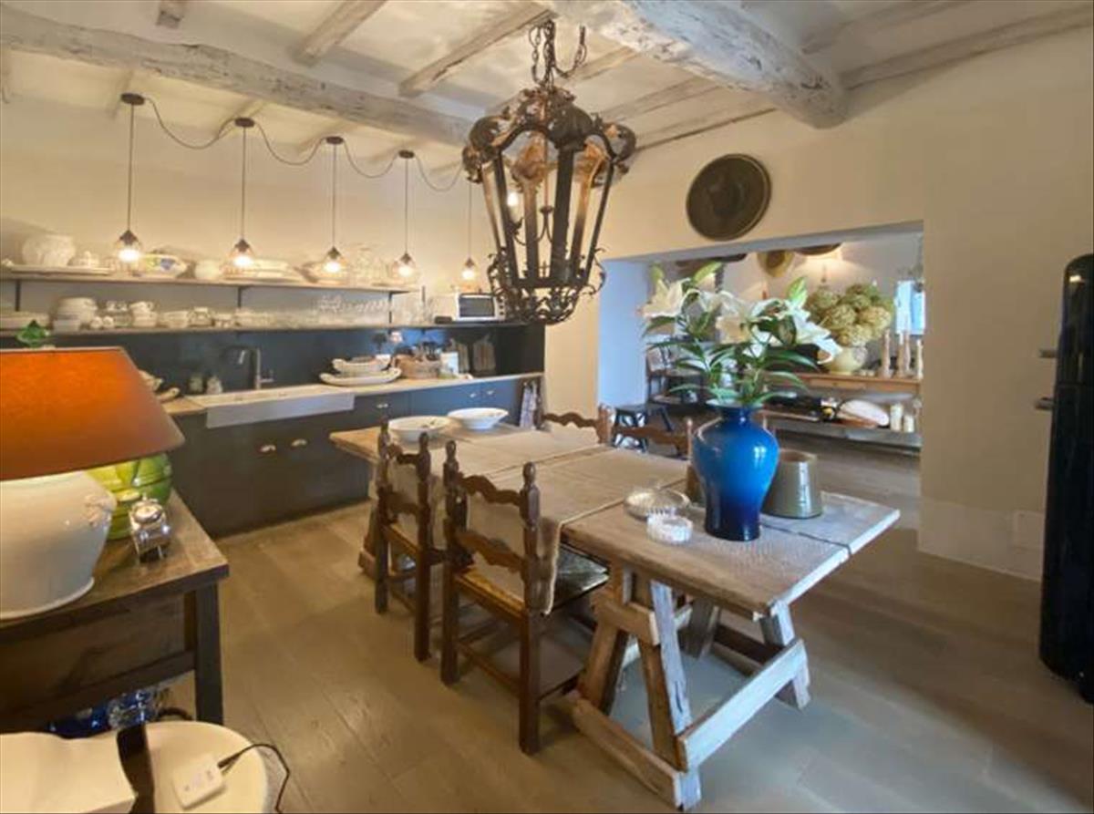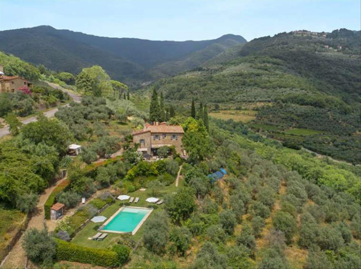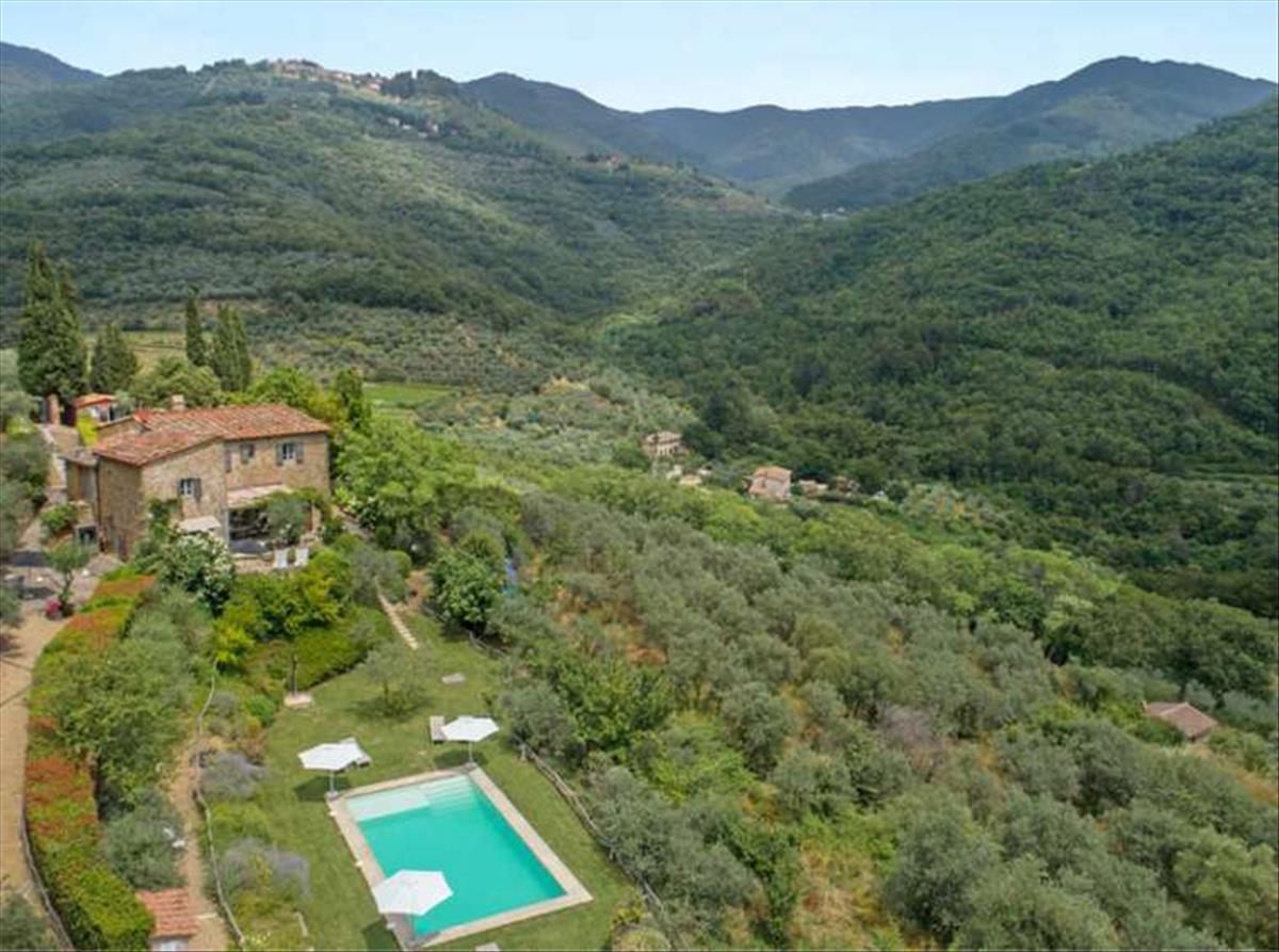 A buja toszkán vidéken megbúvó parasztház panorámás kilátással a lent fekvő városra. Két szinten elhelyezkedő, összesen 222 négyzetméter területű, három apartmanból álló ingatlan.