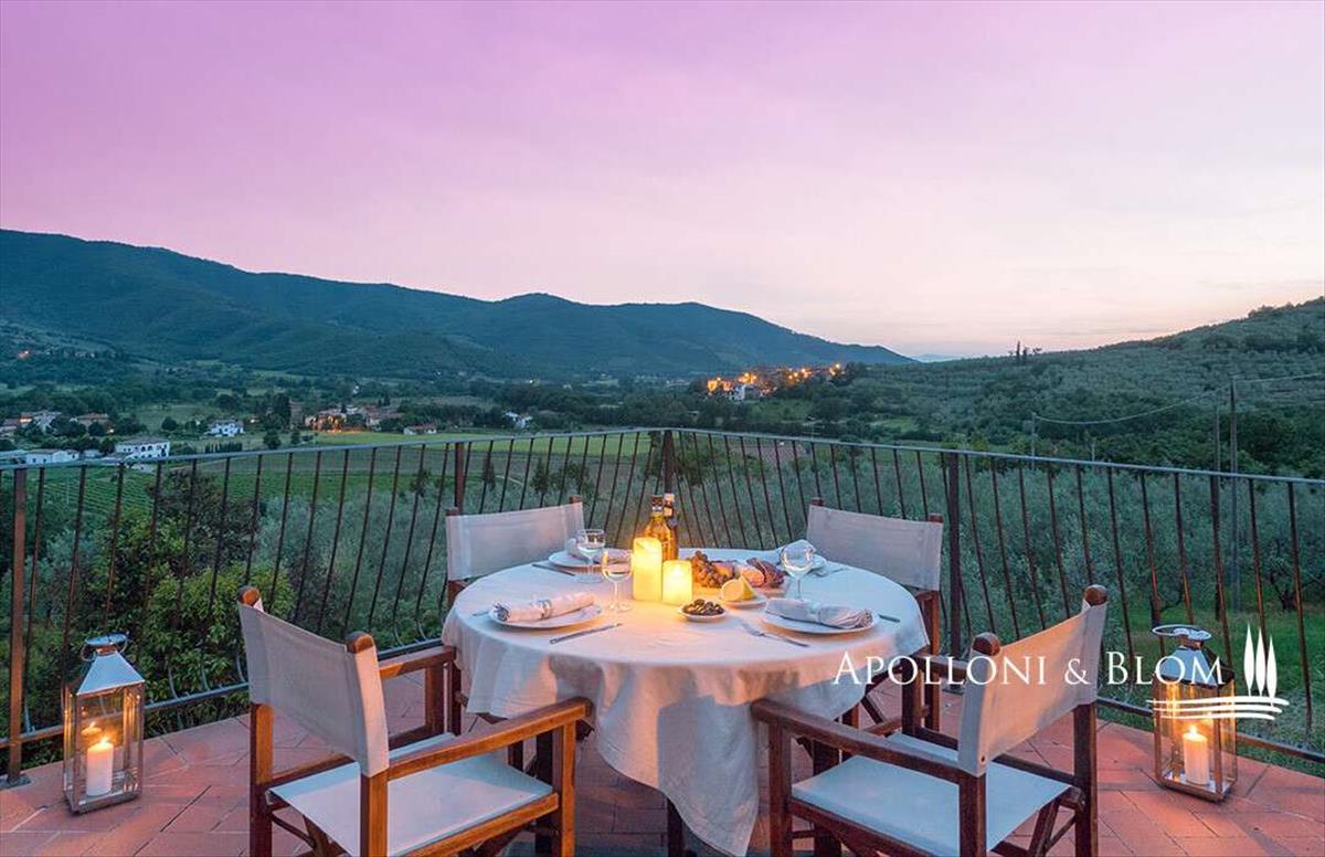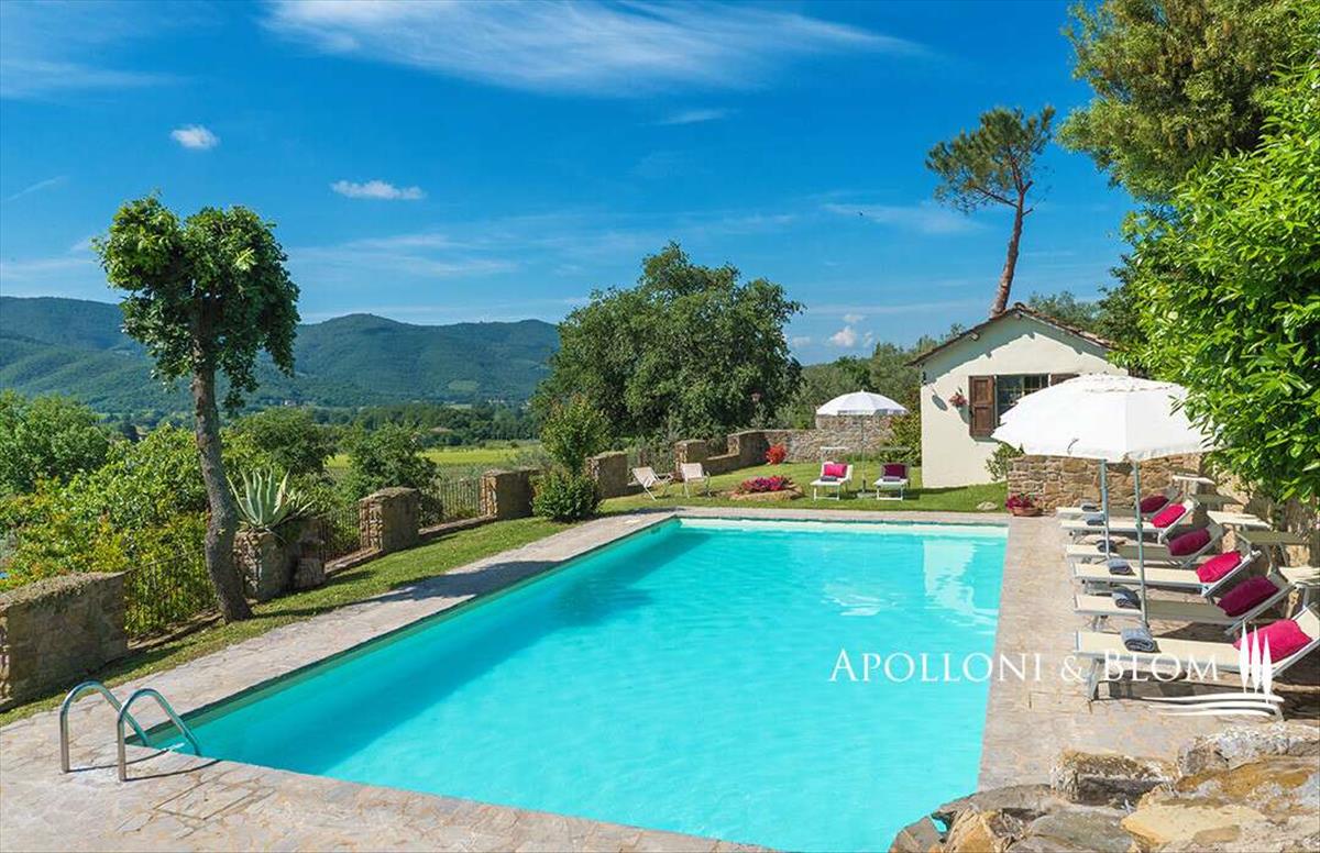 Egy gyönyörű domboldali helyen tanyasi üdülőhely, apartmanok, melléképületek, medence és olajfaültetvény eladó Castiglion Fiorentino közelében. Az ingatlan a dombon található, mindössze 7 km-re Castiglion Fiorentino központjától, a toszkán vidéken, Firenze déli részén, Cortona és Siena közelében.