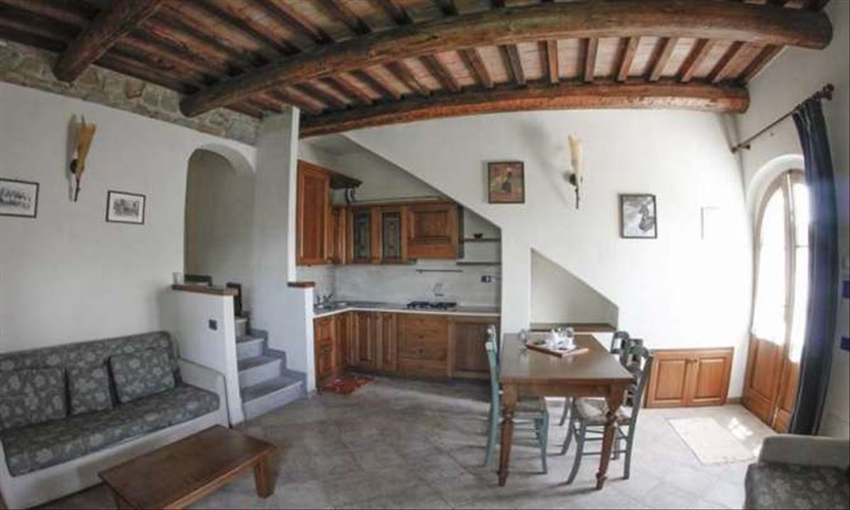 Az ingatlan teljesen felújított, tipikus toszkán stílusban, sugárzó mennyezettel, kövezett falakkal és terrakotta padlóval.