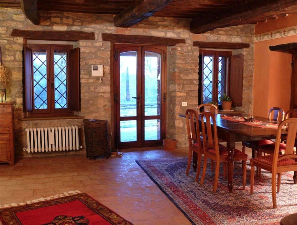 Manor kőből épült vidéki ház és két vendégház felújított medencével, kerttel és olajfaültetvénnyel eladó Montegabbione, Terni megyében. Egy romlatlan hely Umbria vidékének gördülő dombjai között, a Monte Peglia bioszféra mellett, egy UNESCO világörökségi lelőhely közelében, távol a zajtól, ahol a béke, a természet és a szép élet uralkodik. A Tre Casali a saját parkjával és olajfaligetivel körülvéve tökéletesen visszanyerte eredeti jellegét.A kőfalak, a mennyezet, a fedett fa gerendák és a terrakotta padló egyedivé teszik az ingatlant, elegáns hangulatot teremtve, amely visszatekint az ókorra. A kastély, mely nagyobb a másik kettőnél, kiváló lakótereket kínál a földszinten, és az első emeleten négy kétágyas hálószoba található.