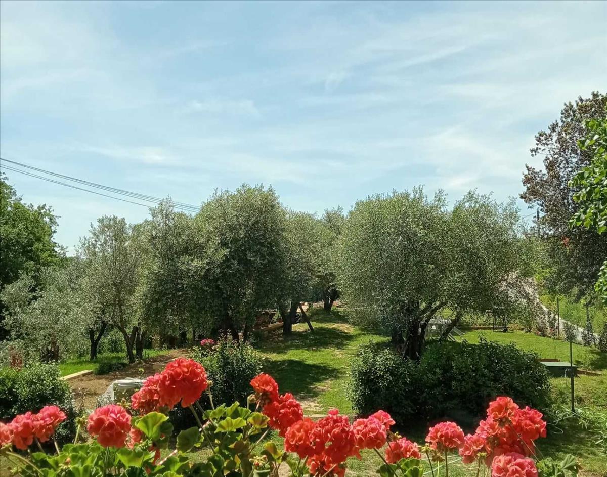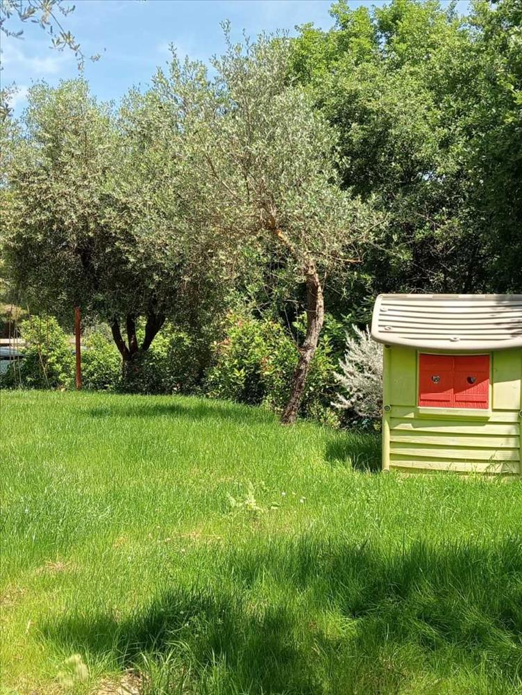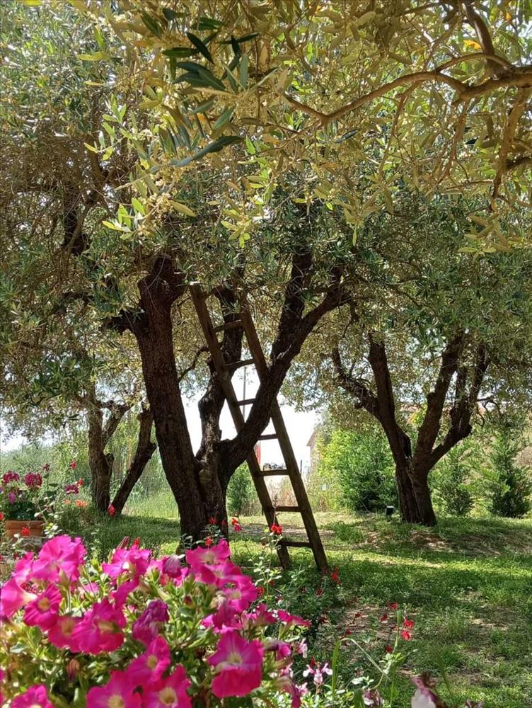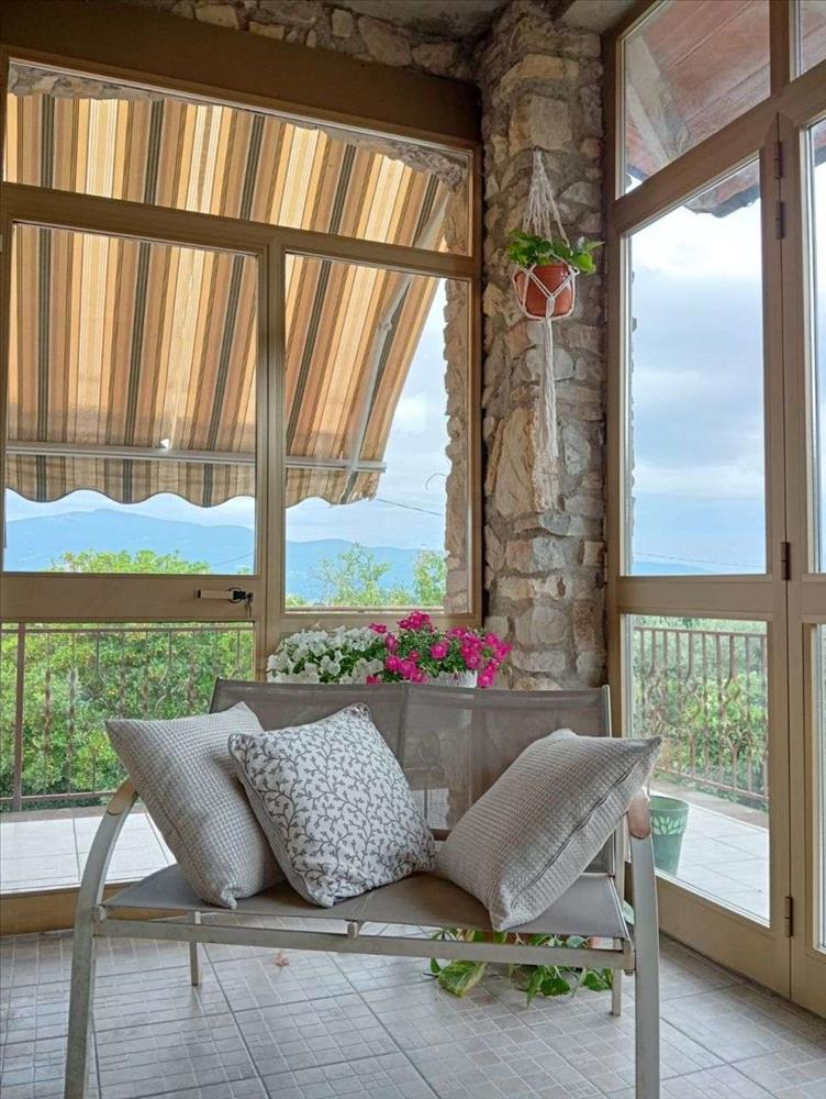 A bejárat egy privát lépcsőházhoz vezet, amely hozzáférést ad egy tágas, világos nappalihoz kandallóval, nyitott konyhával és terasszal, két kétszobás hálószoba áll rendelkezésre, közülük az egyik saját fürdőszobával, emellett van egy kis hálószoba, két fürdőszoba, egy nagy beépített gardróbszoba és mosókonyha. A lakáshoz tartozik több terasz, egy padlás a második emeleten, amelyet lakássá lehet átalakítani, továbbá egy kb. 1700 m²-es kert olajfákkal, valamint egy felújítandó melléképület és további kb. 3000 m² földterület.