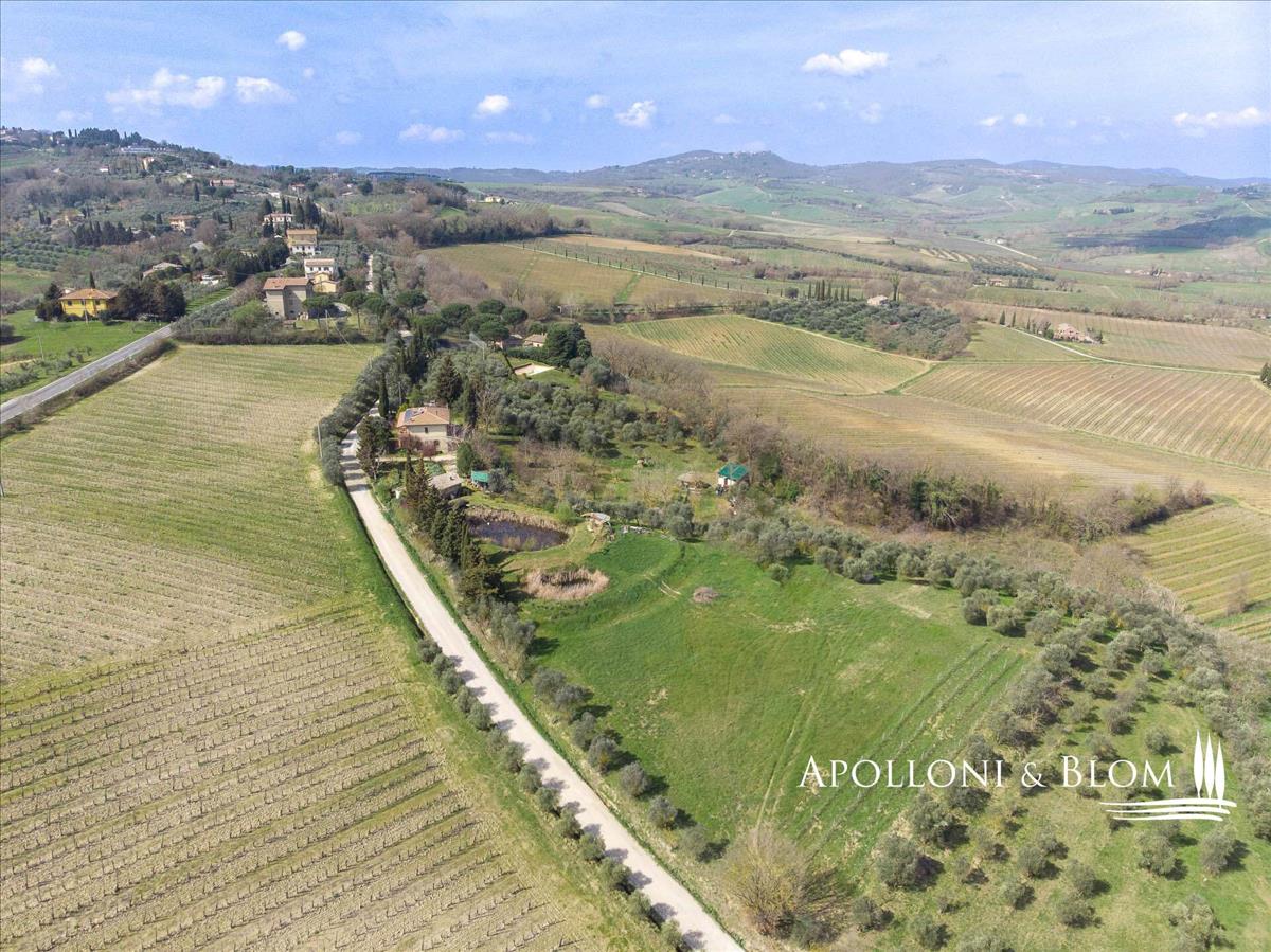 Klasszikus verandával, két emeletes vidéki házzal, melléképületekkel, szőlővel és olajfaligettel eladó Montepulciano, Siena külvárosában. Néhány kilométerre a középkori Montepulciano városától a La Lanterna egy korábbi parasztház, rendezett, két szinten, körülbelül 2,5 hektár / 6,1 hektár magánterület.Rendelkezik zárt hozzáféréssel, van egy tornác a földszinten, és a felső fedett terasz piros tégla oszlopokkal jellemzi. Általános felújításra és korszerűsítésre van szükség. A tetőn lévő napelemek nem működnek, és teljes cserére van szükség a legújabb technológiákkal, de nincs szükség további engedélyekre.