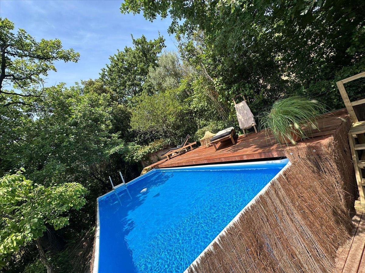A kertben egy kényelmes úszómedence biztosítja a tökéletes pihenést egy napos túra után.