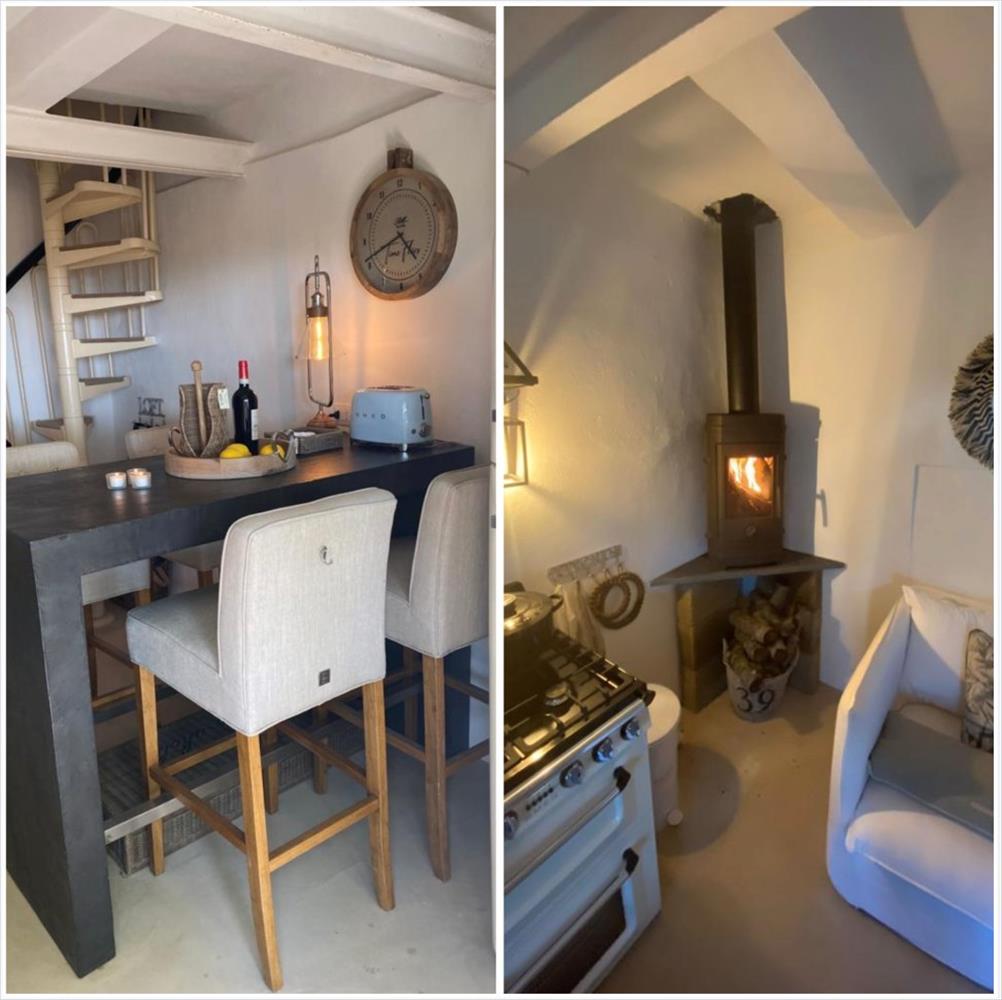 Az ajtó előtt egy fedett, kellemes pihenőterület van, ahol a konyha mellett élvezheted a friss levegőt.