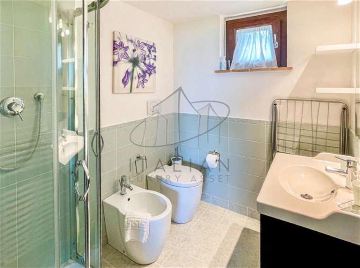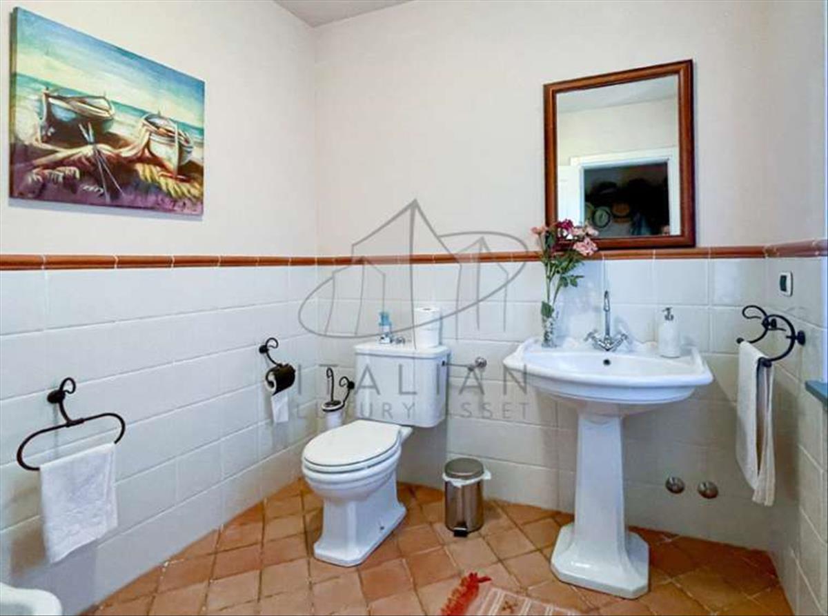 Földszinten a belépés egy tágas verandán keresztül történik, amely a medencére néz, és remek nyári lakóhely. Innen az egyik fő nappaliba vezet kandallóval és egy szomszédos étkezővel. EGY másodlagos bejárat a lépcsőhöz kapcsolódik, amely felvisz a felső szintre, és egy nagy, teljesen felszerelt konyhához csatlakozik, amely hozzáférést biztosít a mosókonyhához és a fürdőhöz. Ezen a szinten vendégszoba, egy technikai helyiség és egy árnyékos veranda található – talán az ingatlan legmenőbb és legnyugodtabb része –, amelyet harmadik szabadtéri étkezőhelyként rendeztek be hagyományos pizzasütővel felszerelve.